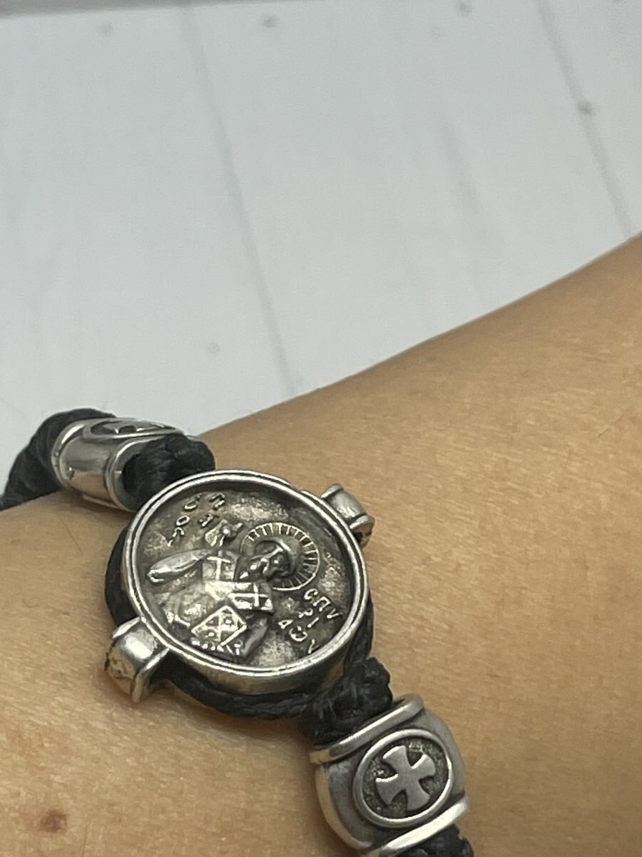 Браслет православный плетеный с гравировкой и молитвой Георгию Победоносцу