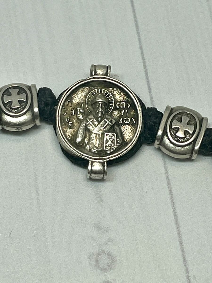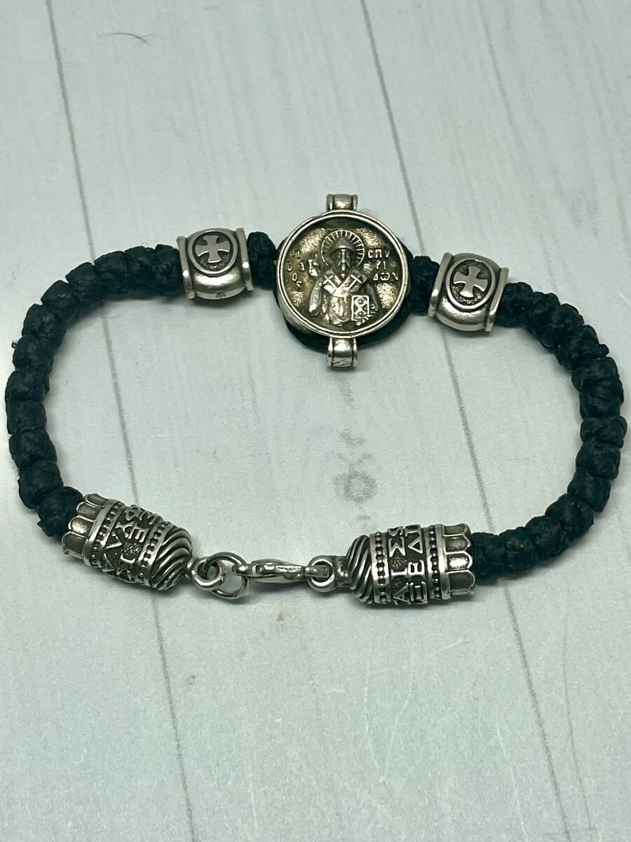 Браслет плетеный православный с молитвой и иконой Спиридона Тримифунтского