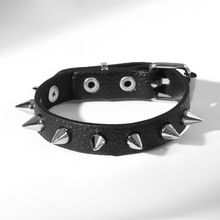 Браслет кожа «Хардкор» шипы, цвет чёрный в серебре