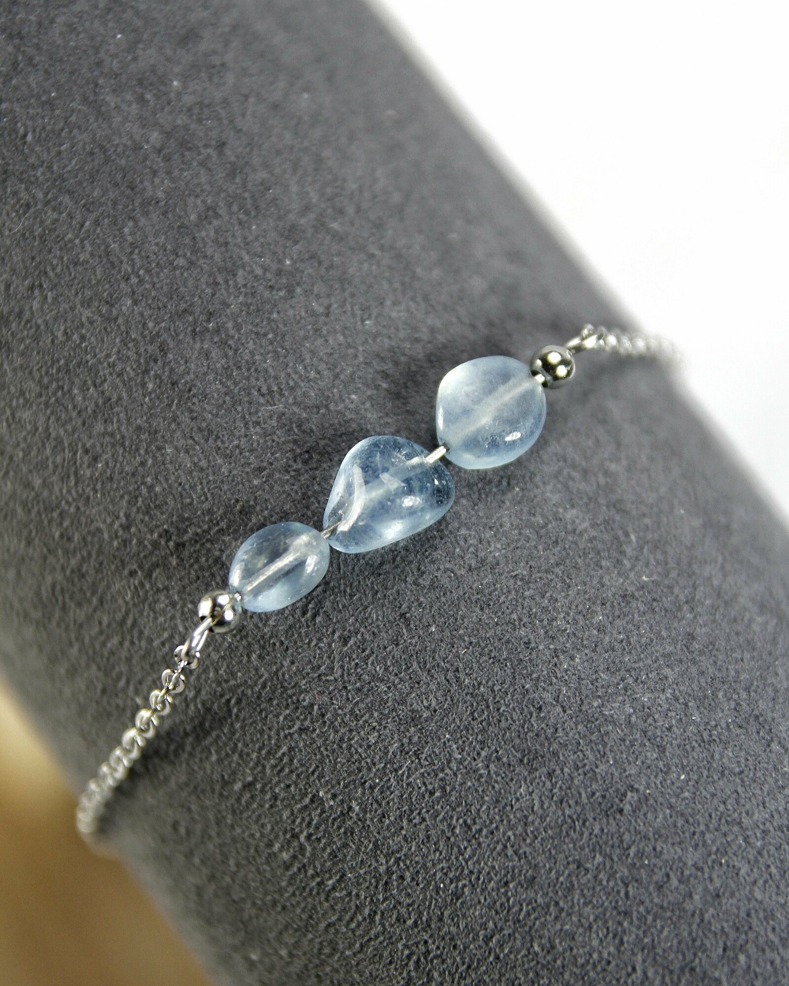 Аквамарин браслет - натуральный камень, 4-8 мм, цепочка, цвет серебро - позволяет обрести счастье