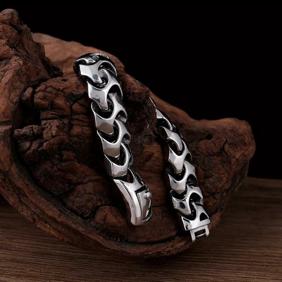 Массивный браслет из стали, мужской с эффектом состаренного серебра/цвет серый, 21 см