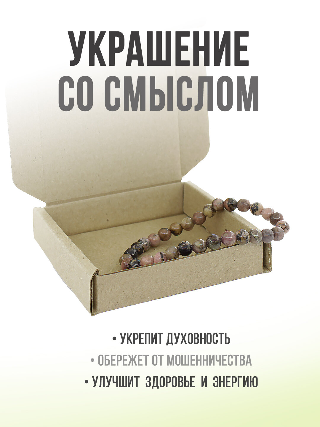 Родонит (Россия) розовый + черный 6мм, браслет "Классика" длина 17см