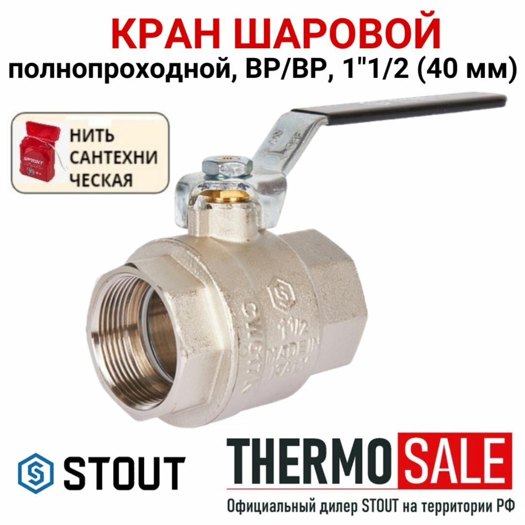 STOUT Кран шаровой полнопроходной, ВР/ВР, ручка рычаг 1 1/2" STOUT