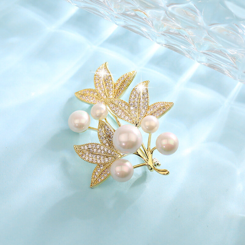 Купить Брошь, искусственный камень, жемчуг имитация, стразы