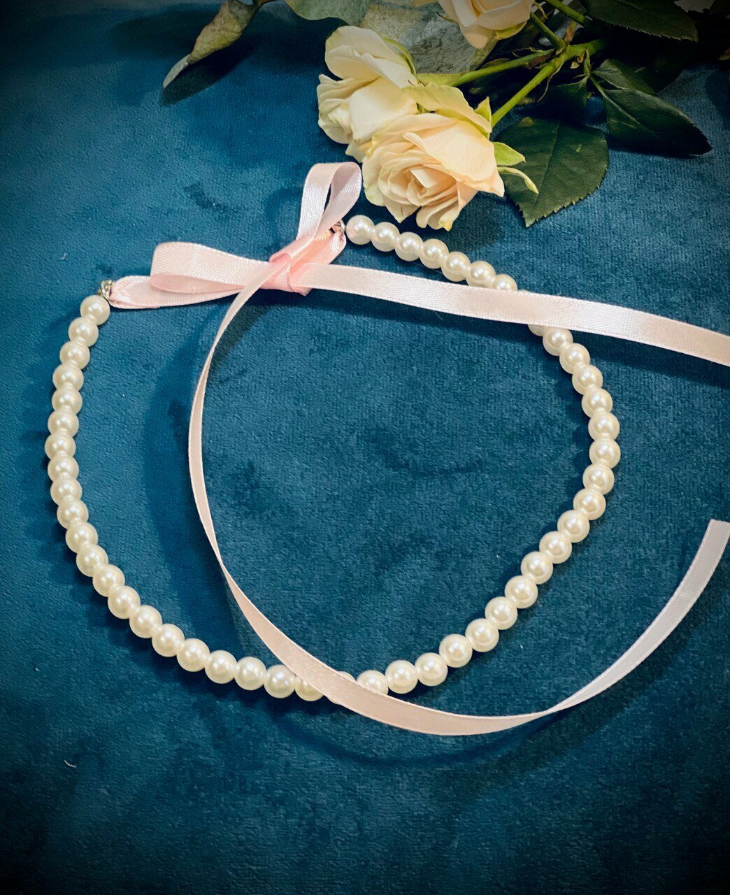 Чокер ожерелье жемчуг с черным бархатным бантом
