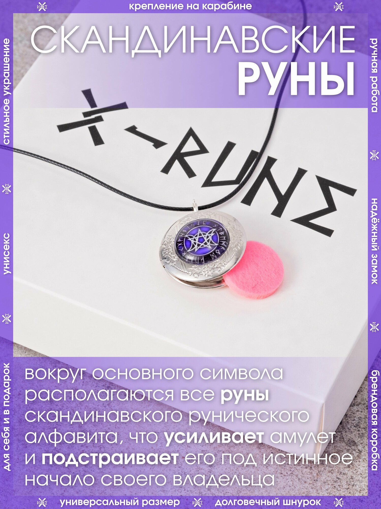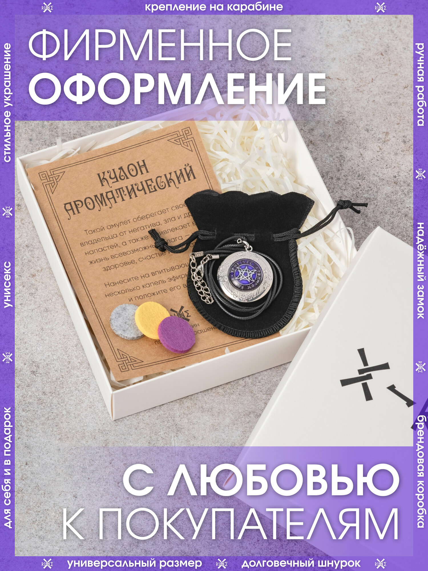| Комплектация | Кулон – 1 шт., впитывающие диски – 3 шт., мешочек для хранения – 1 шт., аннотация – 1 шт., брендированная коробка X-Rune – 1 шт. |