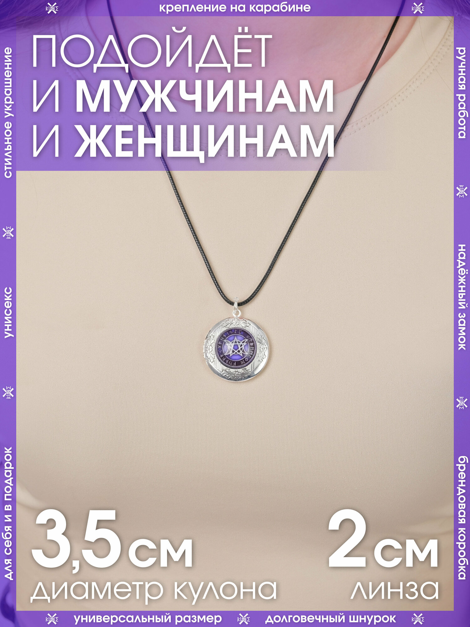 Кулон Пентаграмма/Защитный амулет на шнурке/Охранный талисман-медальон, защитник от порчи, зла, символ силы, добра и удачи
