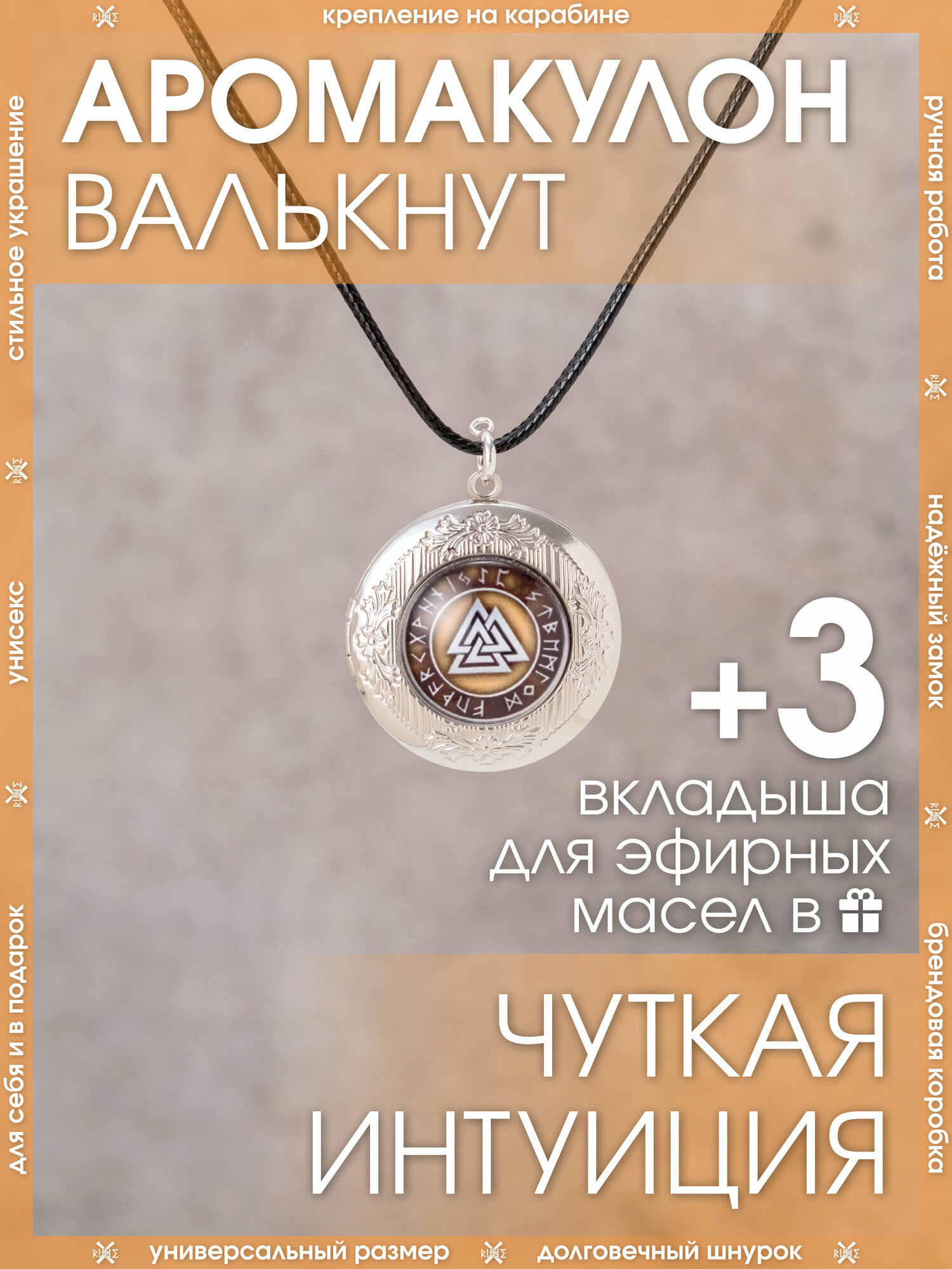 Кулон Валькнут/Защитный ароматический амулет на шнурке/Охранный талисман-медальон, символ знаний и тайн, помощник в обучении и карьере, подвеска-оберег