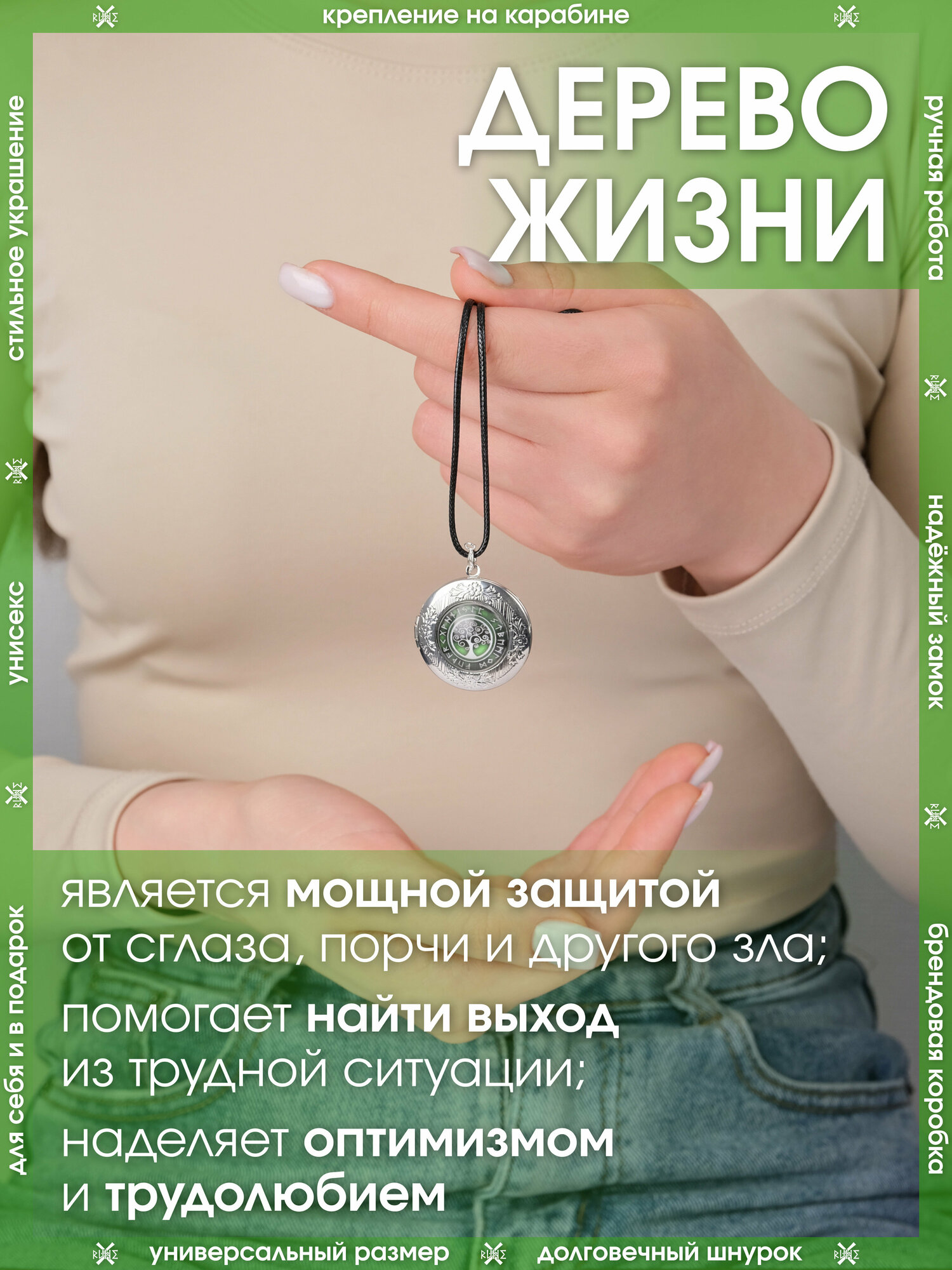 Кулон Дерево Здоровья/Защитный амулет на шнурке/Охранный талисман-медальон, символ защиты от болезней и долголетия