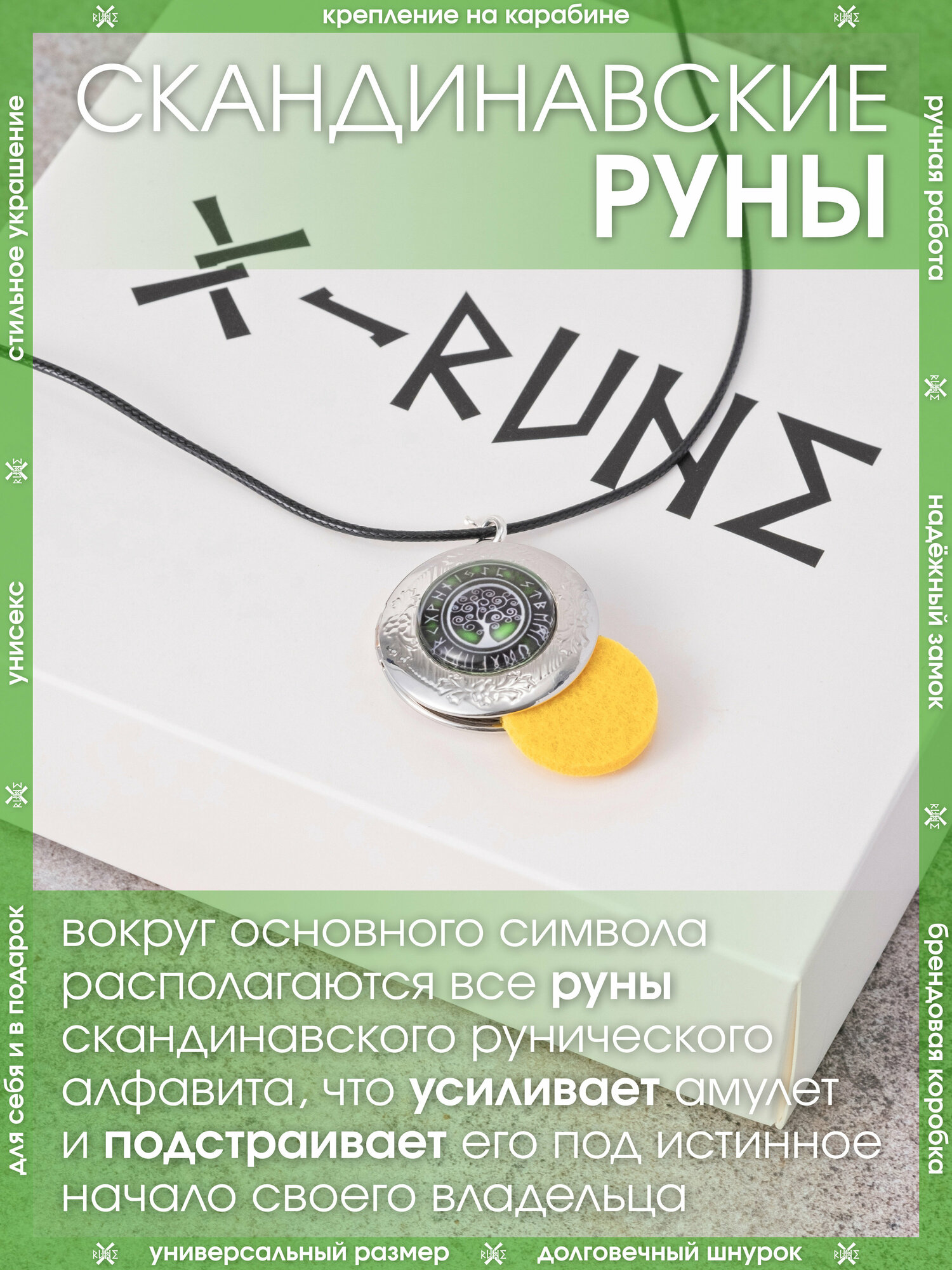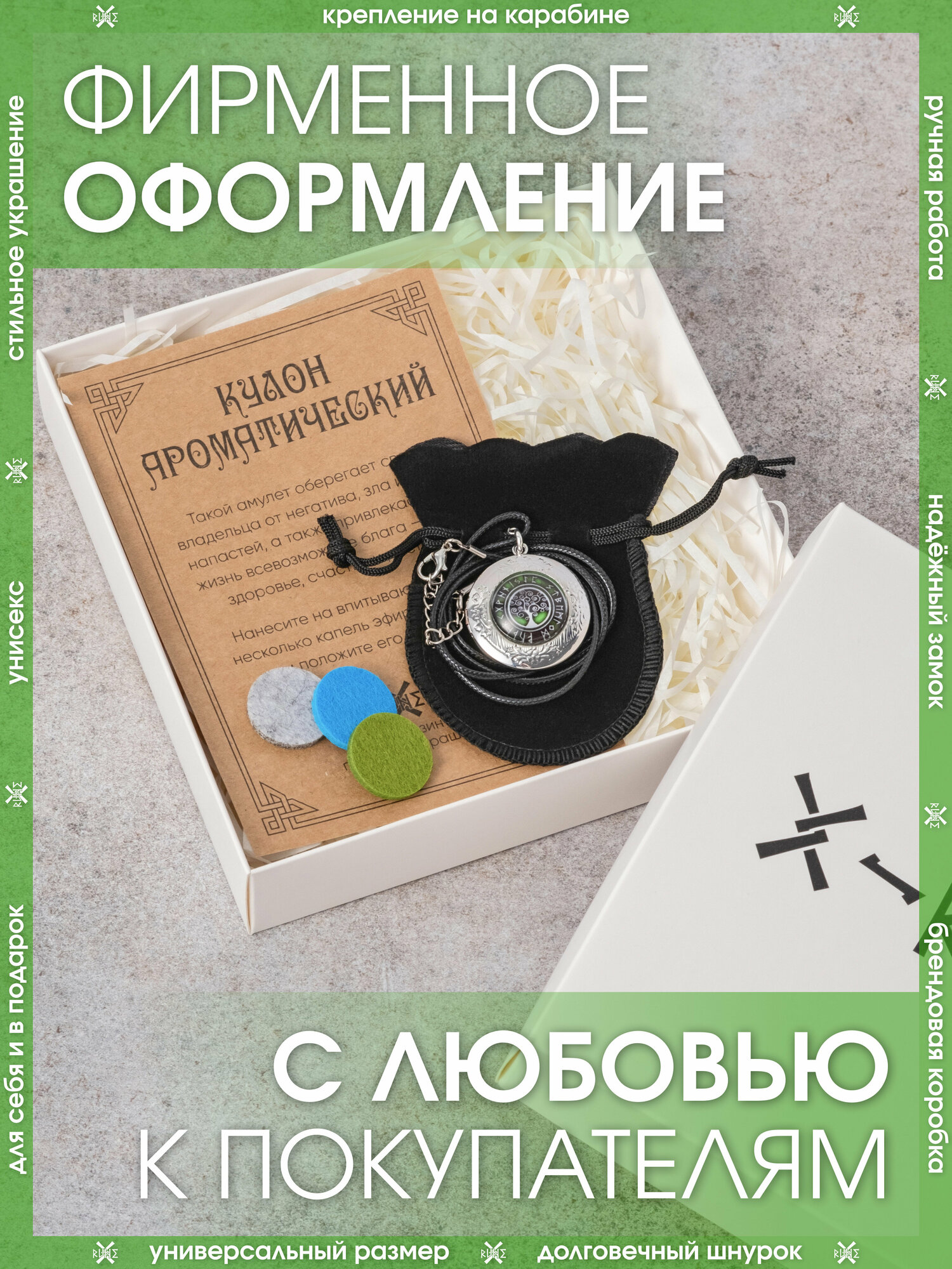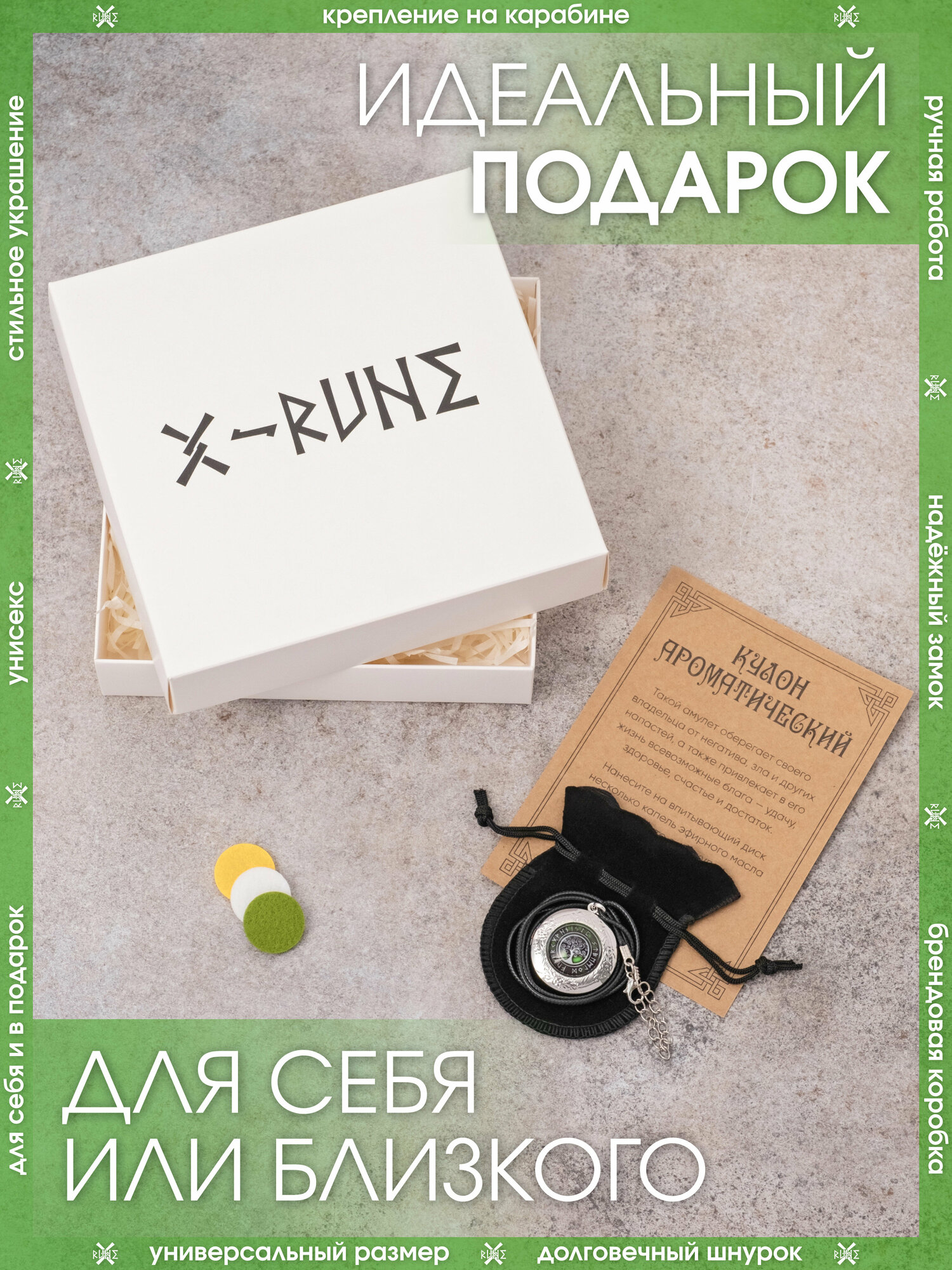 | Комплектация | Кулон – 1 шт., впитывающие диски – 3 шт., мешочек для хранения – 1 шт., аннотация – 1 шт., брендированная коробка X-Rune – 1 шт. |