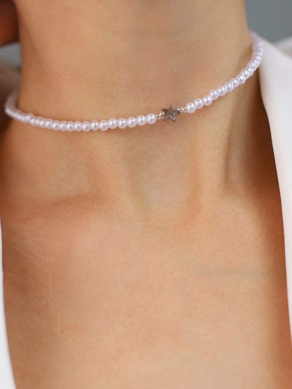 Чокер Stardust, жемчуг имитация, длина 30 см, белый интересное: