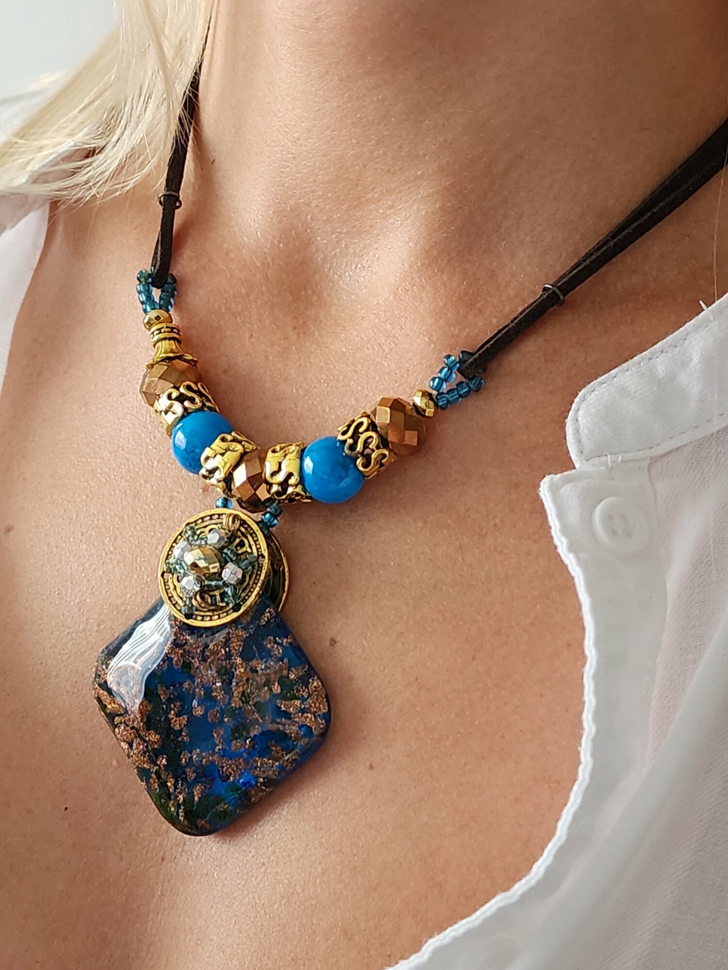 Колье с подвеской из муранского стекла имитация бижутерия