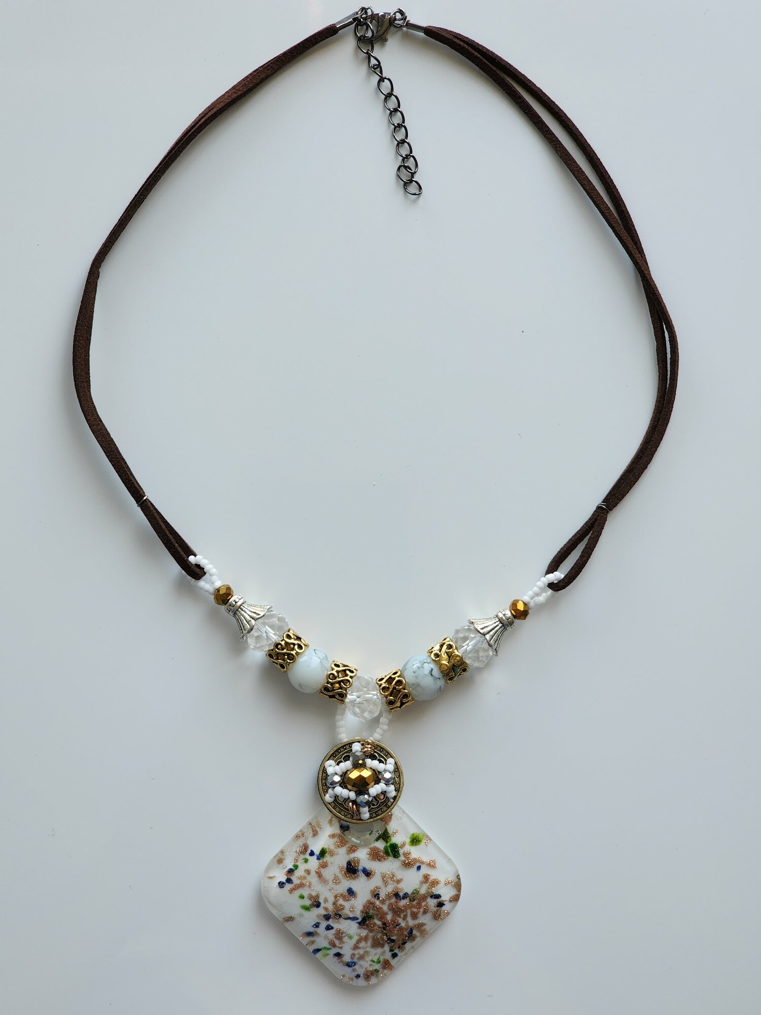 Колье с белой подвеской мурано (имитация)