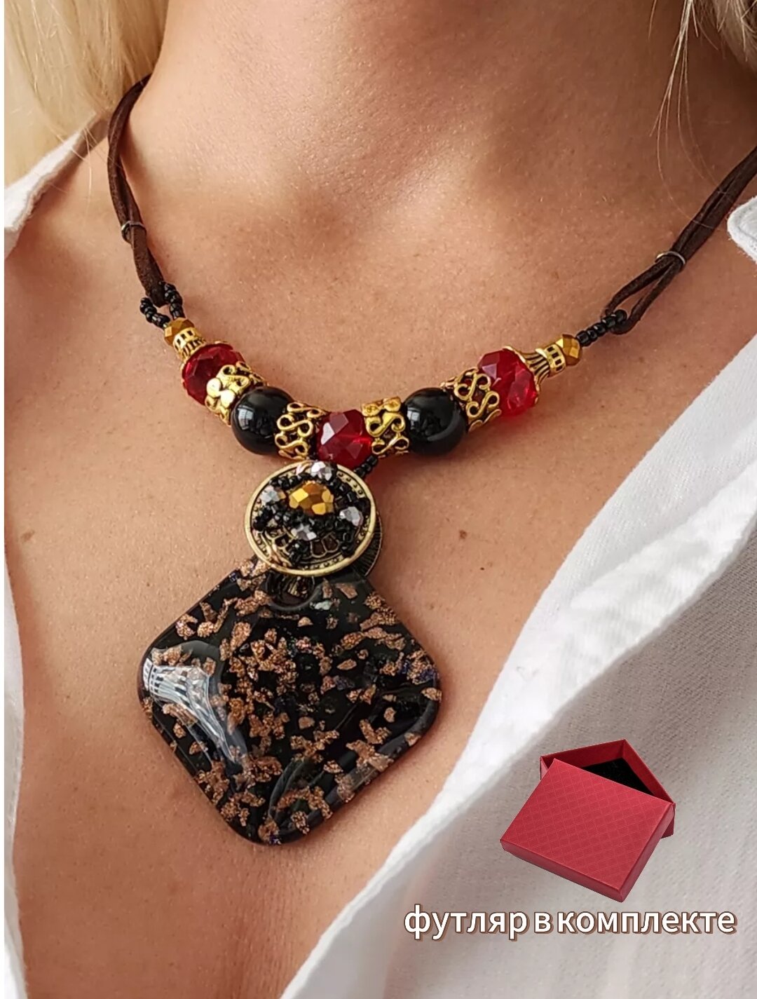 Колье/бусы/ожерелье с подвеской мурано имитация