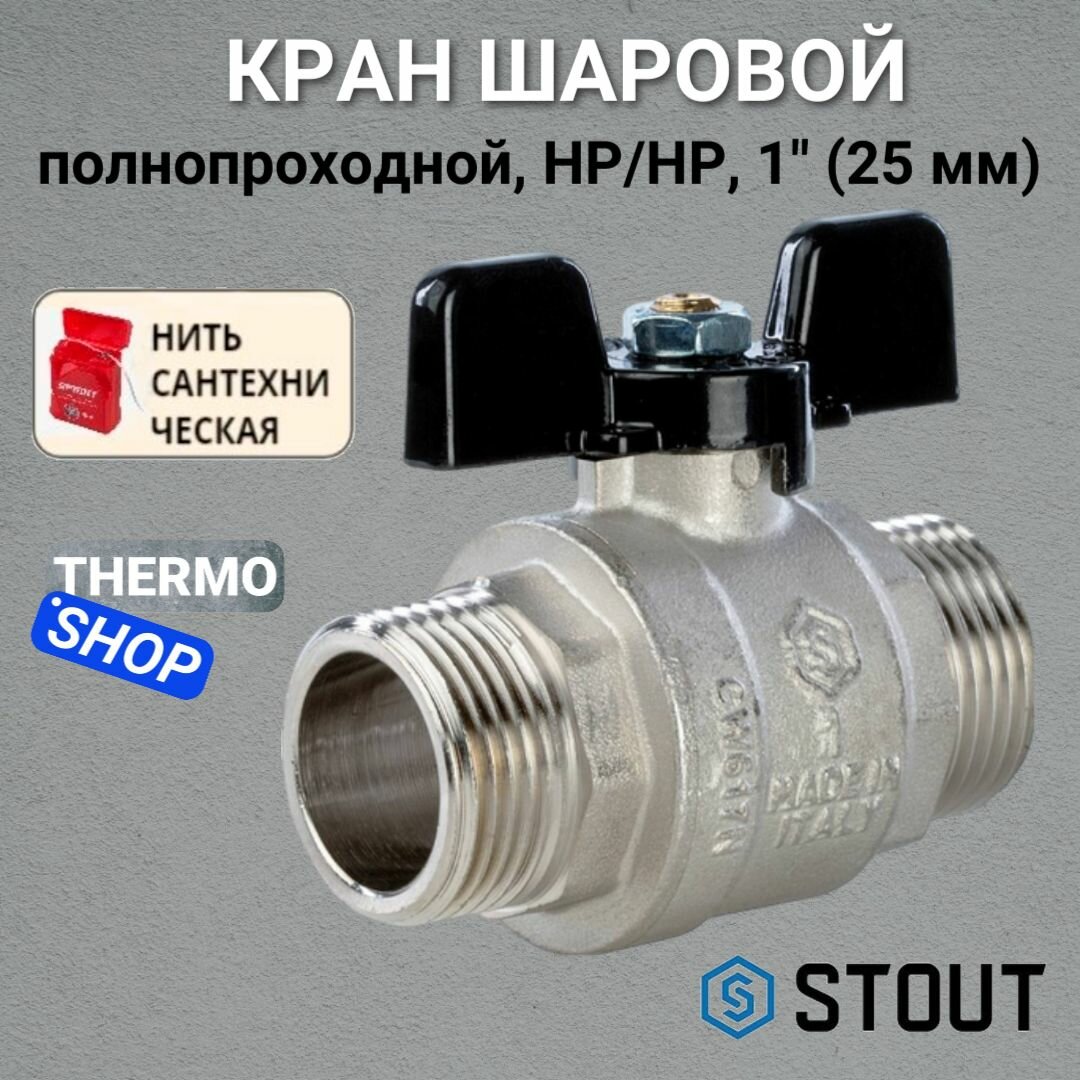 Кран шаровой STOUT полнопроходной, НР/НР 1" (ручка бабочка), art. SVB-0006-000025