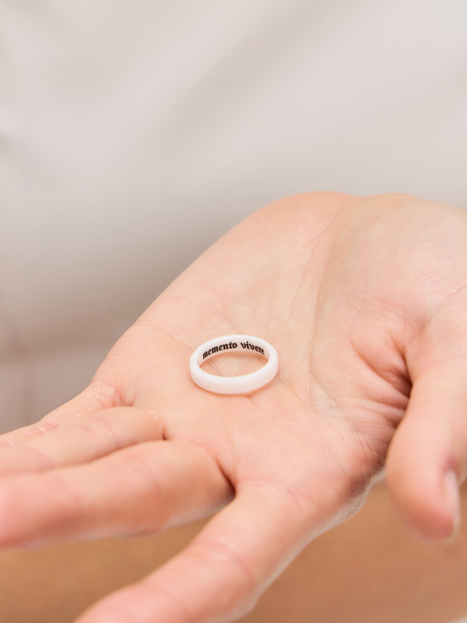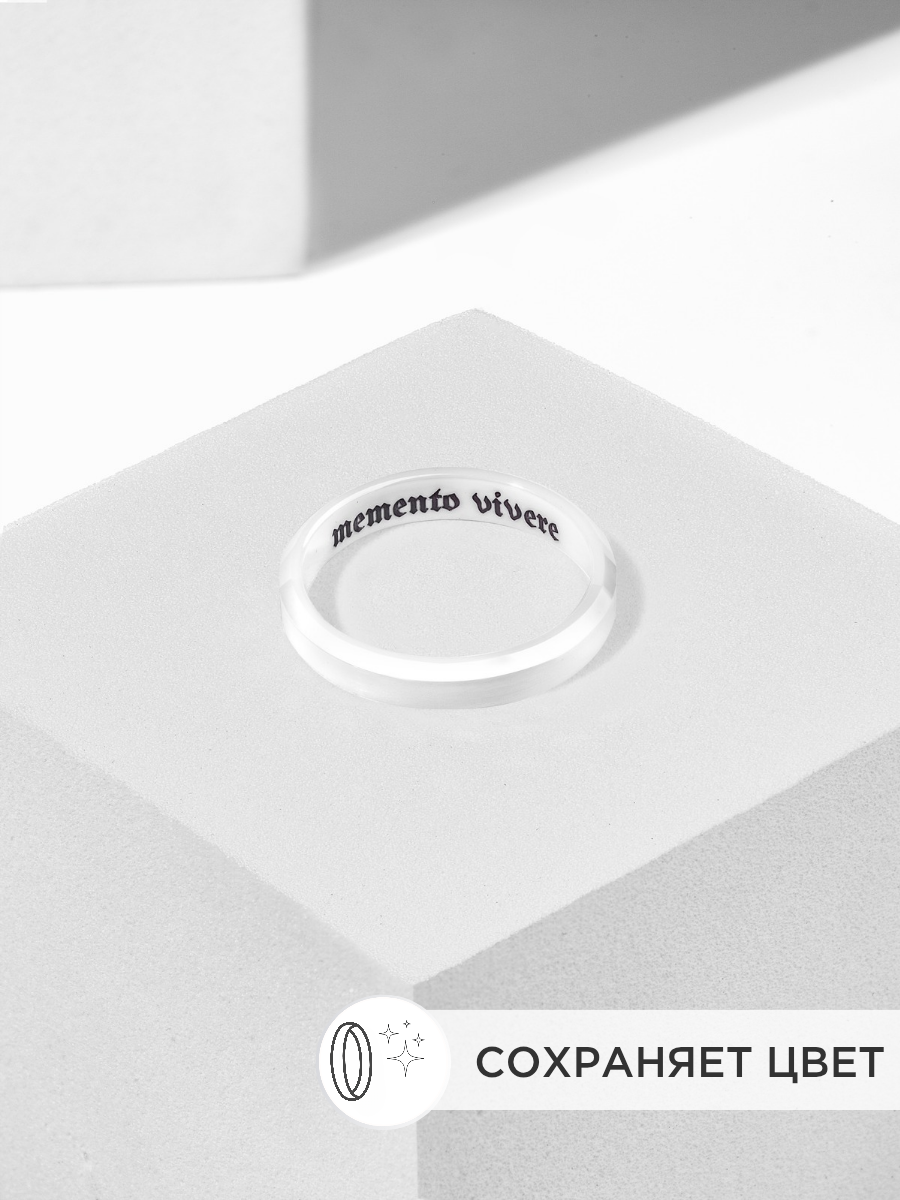 Кольцо серое из керамики с гравировкой "Carpe Diem" 18,5 размер