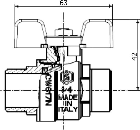 Кран шаровый Bugatti Oregon 03250028 муфтовый (НР/НР), латунь