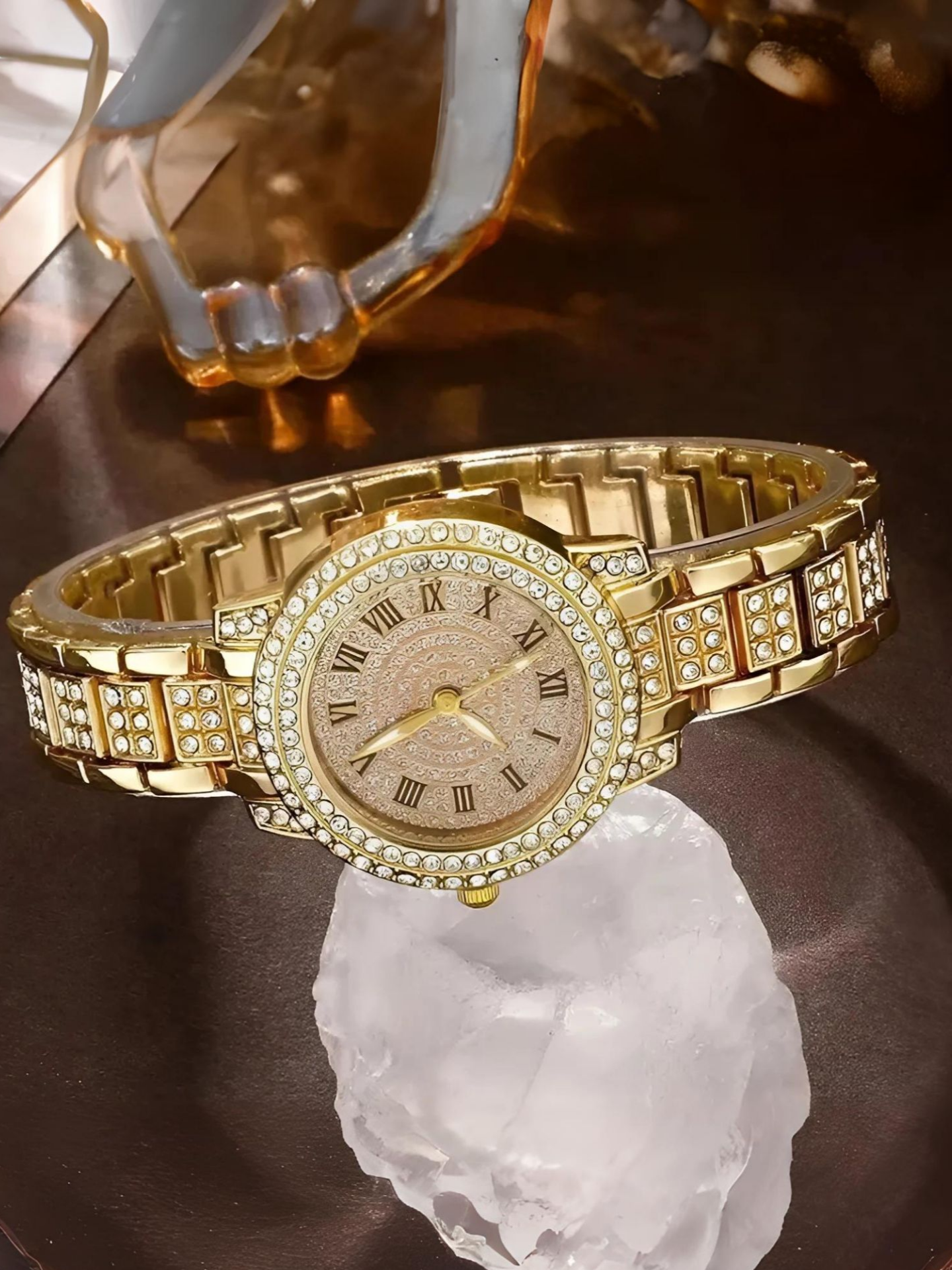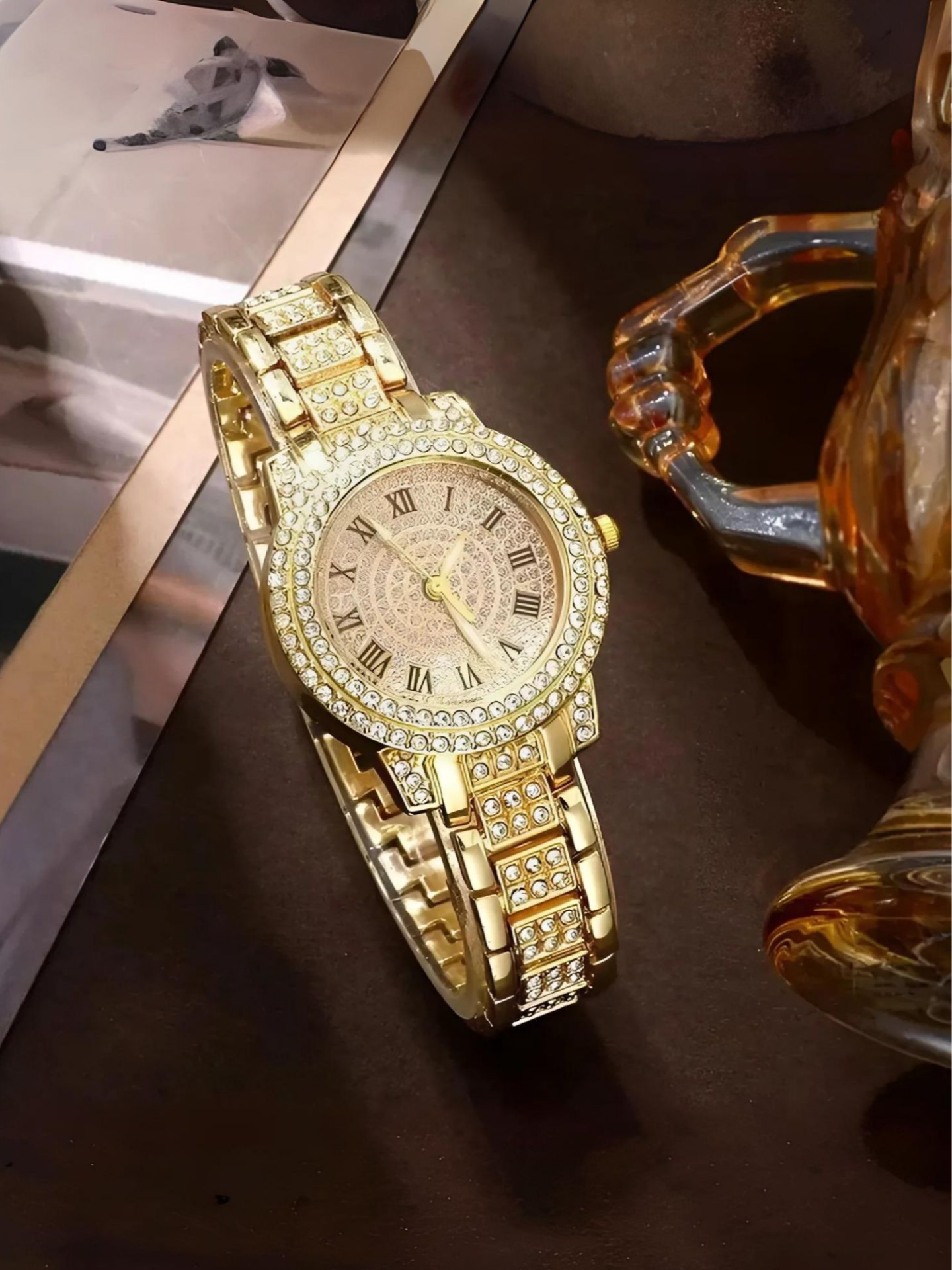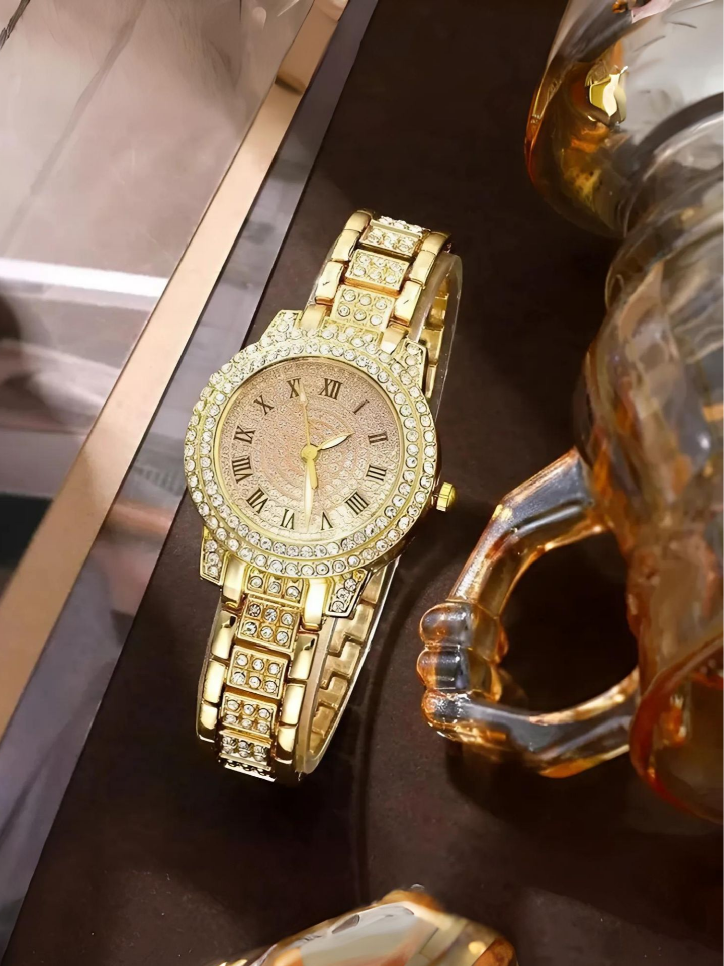 Комплект женских украшений золотистый/ часы / браслет / кольцо / серьги / кулон с цепочкой