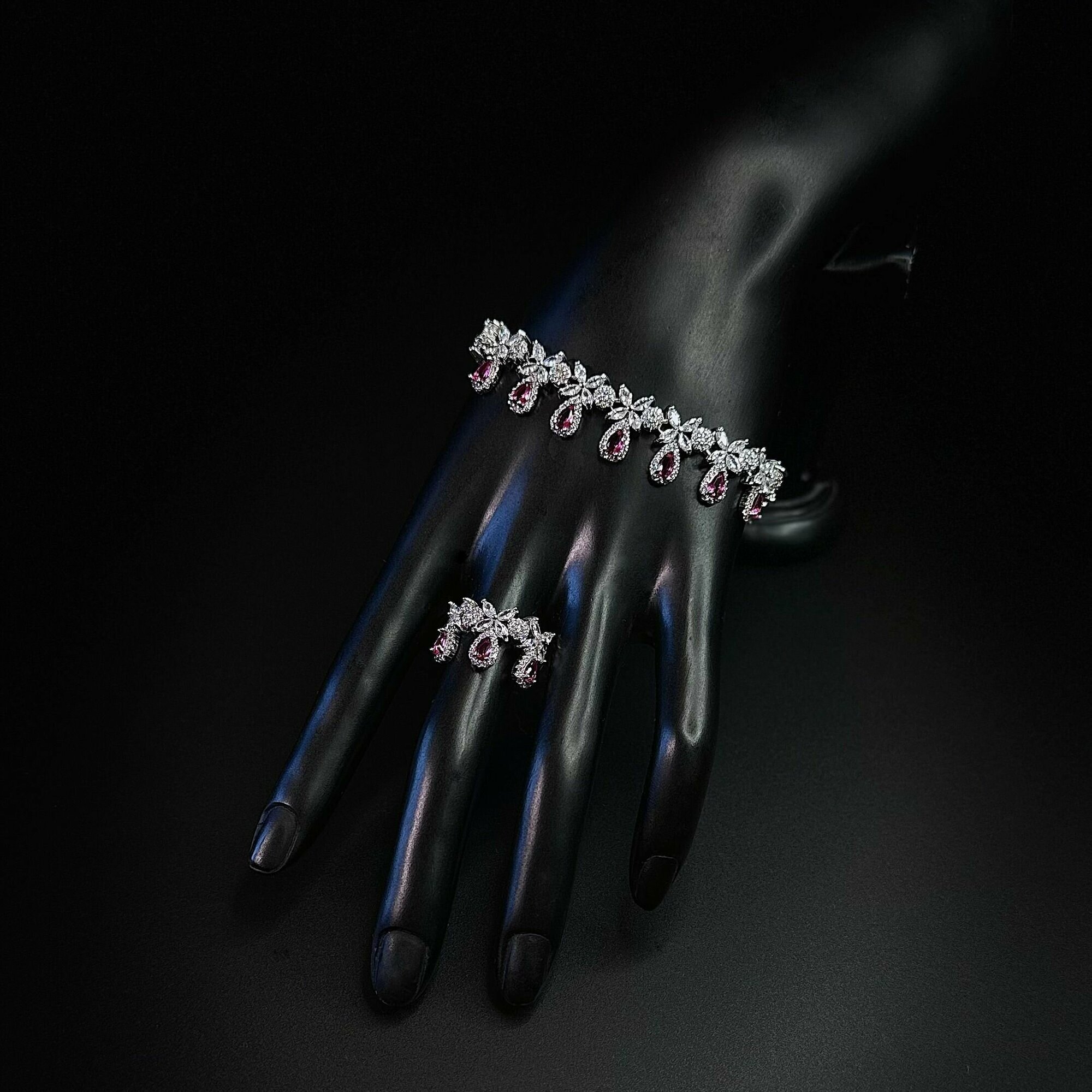| Комплектация | В комплект поставки входит: 1 пара серег; 1 колье; 1 браслет; 1 кольцо; 1 бархатный футляр. |