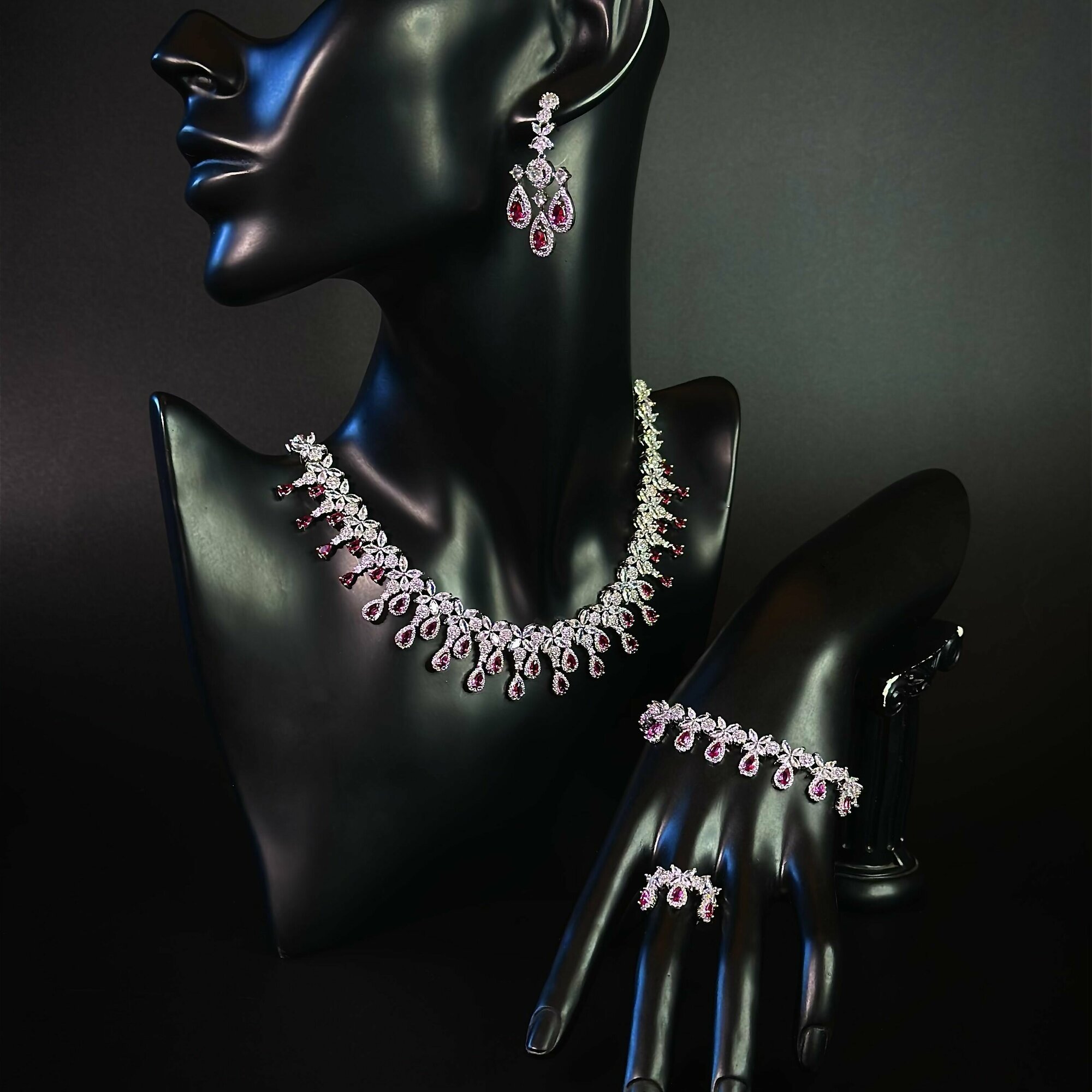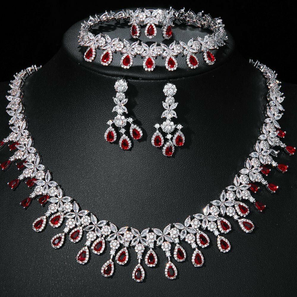 Элитная бижутерия колье женское на шею с серьгами, браслетом и кольцом. Дорогая бижутерия на свадьбу, колье родирование