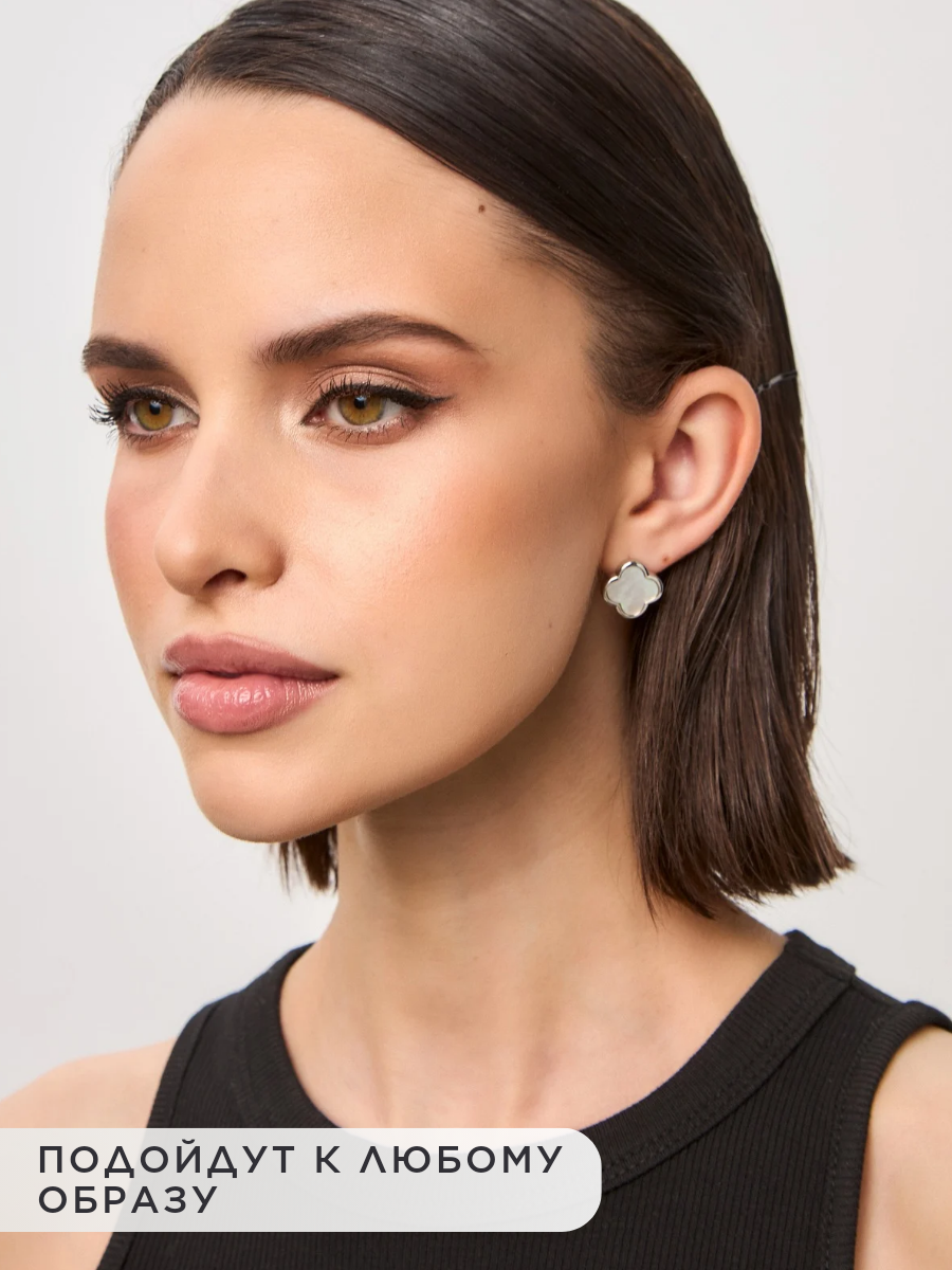 Серьги бижутерия клевер с перламутром женские NOIMA
