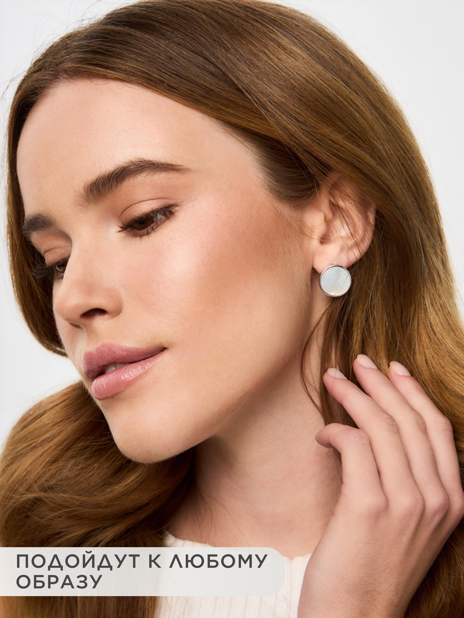 Серьги серебристые круглые бижутерия с натуральным перламутром Noima
