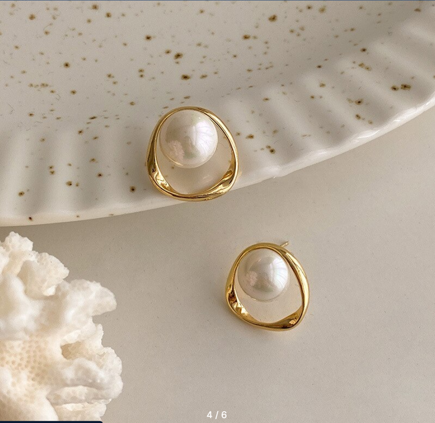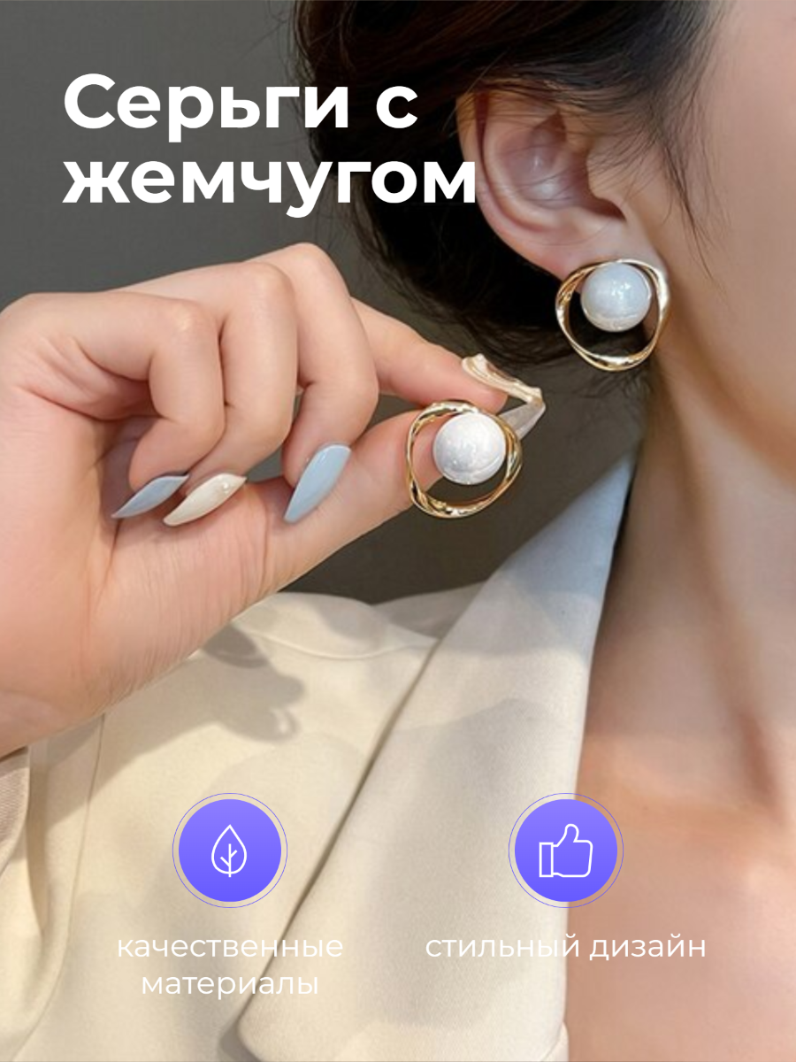 Серебряные серьги / красивая бижутерия / сережки для ушей модные стильные / девушке / жемчуг / золотое