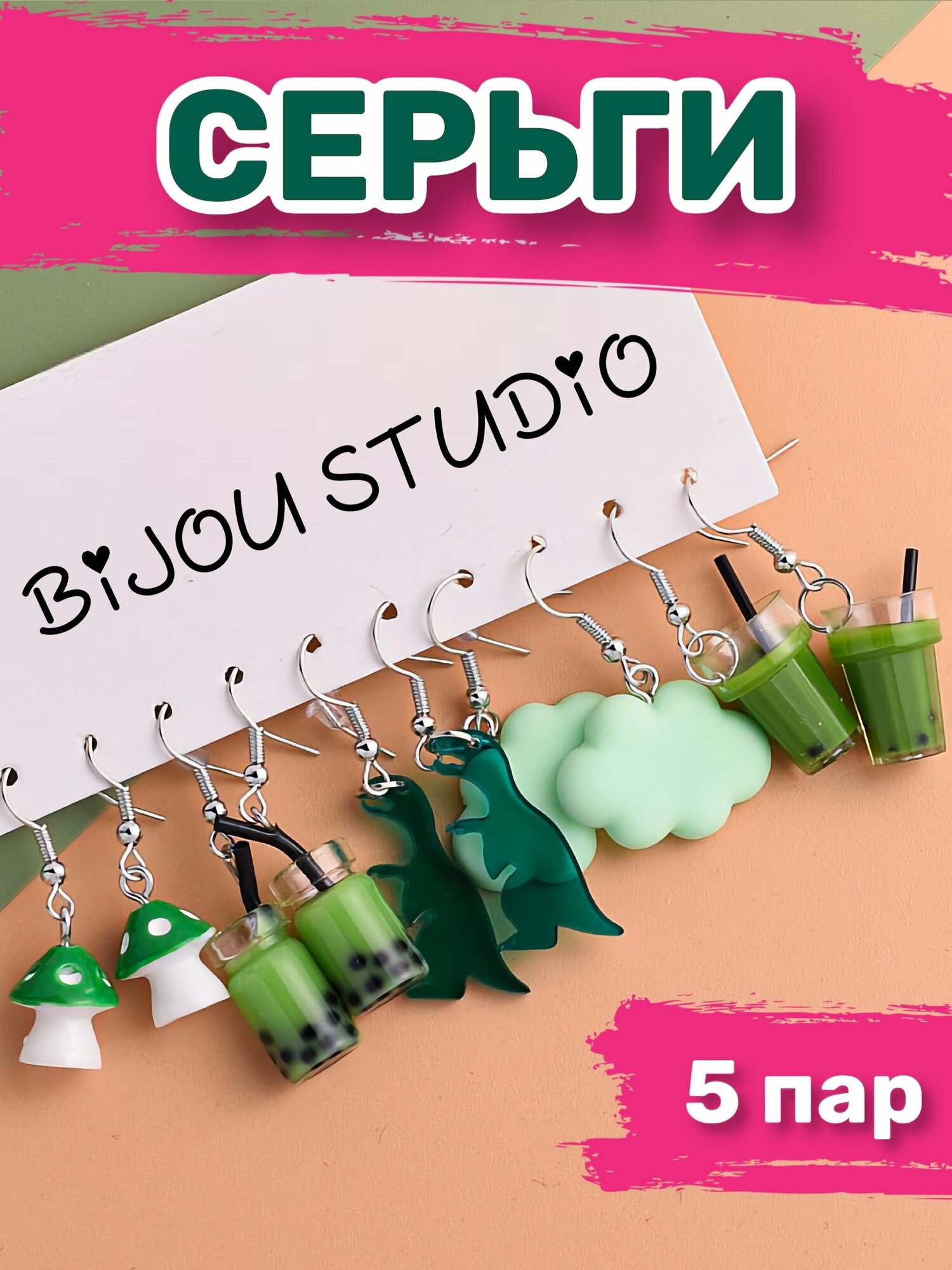 СохранитьКомплект серег BIJOU.STUDIO, белый, серебряный, черный, бирюзовый, хаки, зеленый интересное: