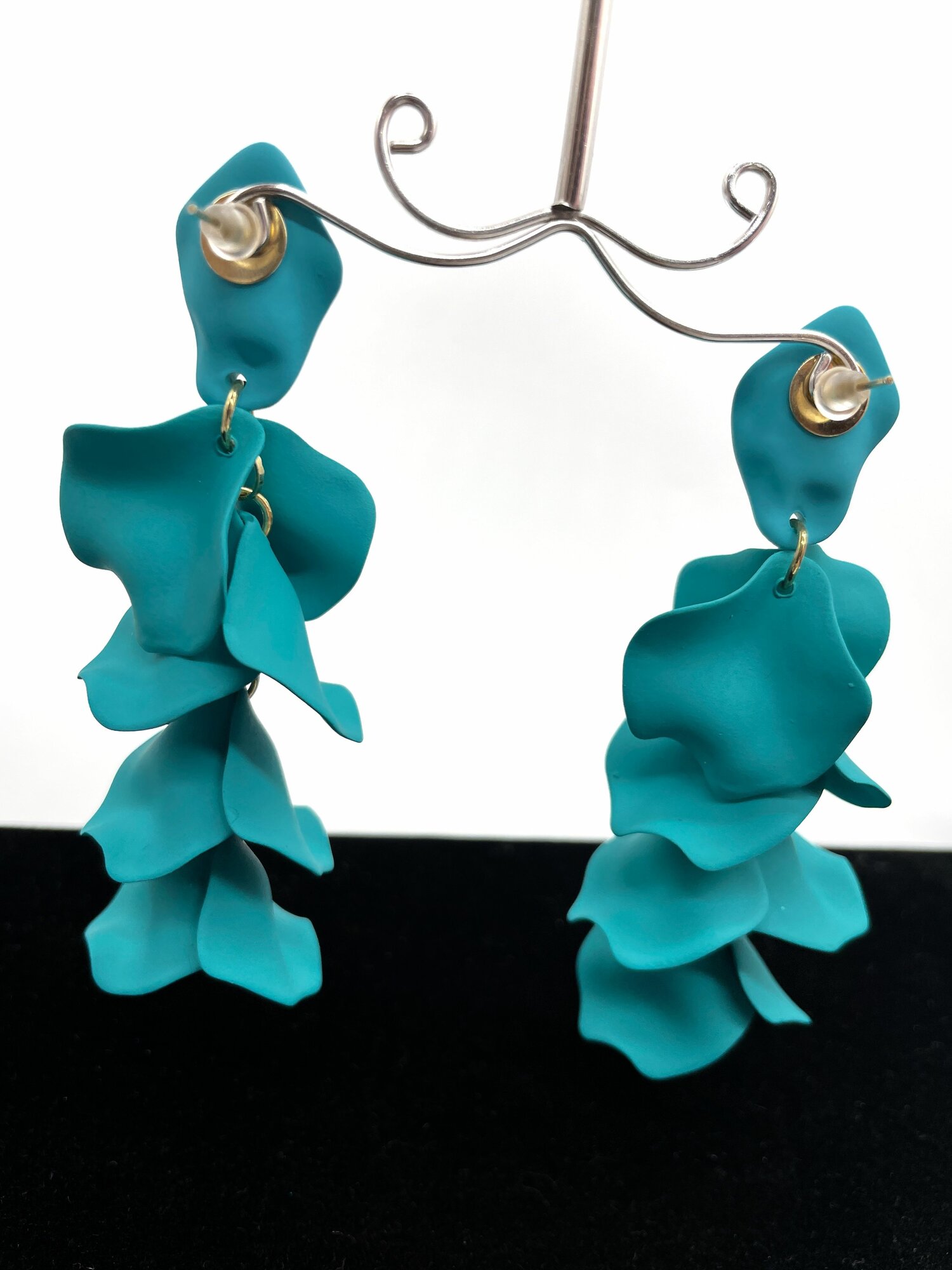 Серьги лепестки темно-синие перелив длинные женские стильные сережки тренд 2024