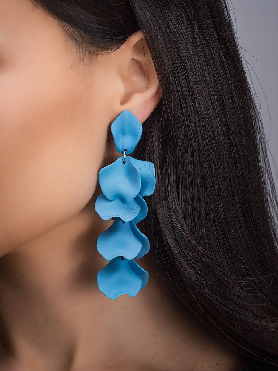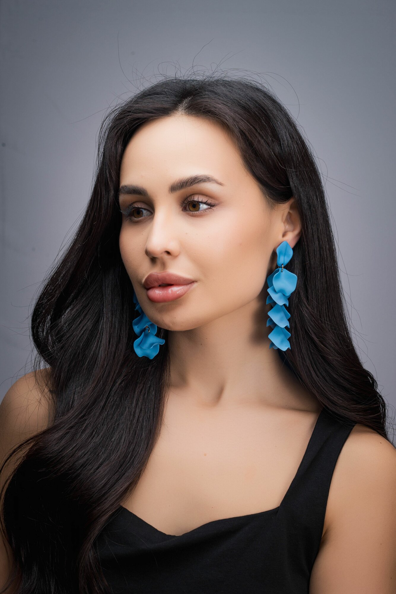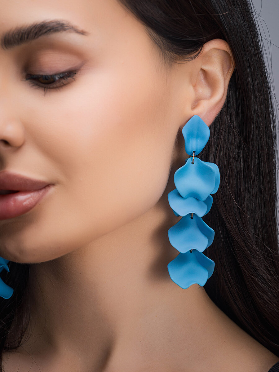 Серьги лепестки темно-синие перелив длинные женские стильные сережки тренд 2024