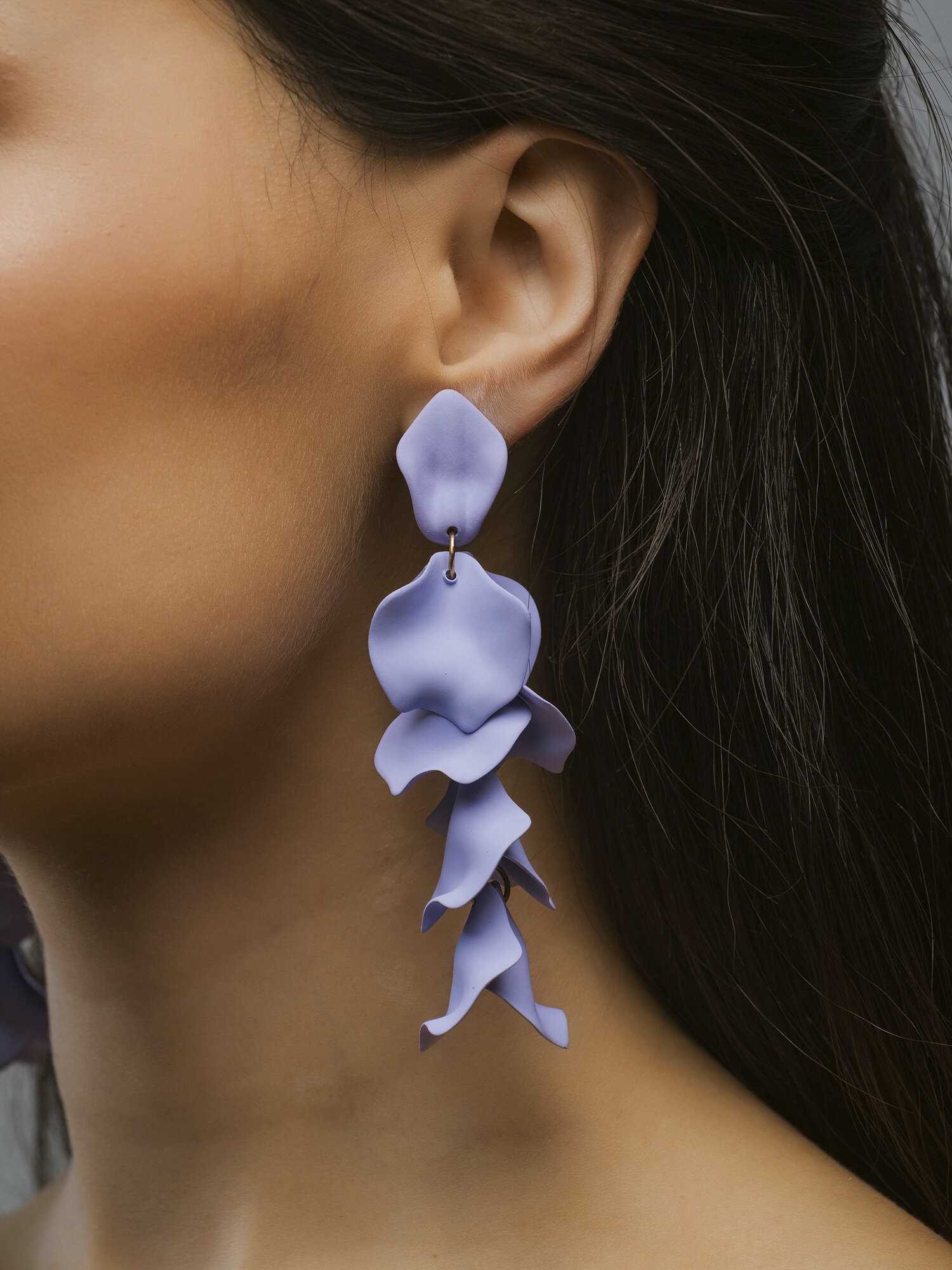 Серьги лепестки темно-синие перелив длинные женские стильные сережки тренд 2024