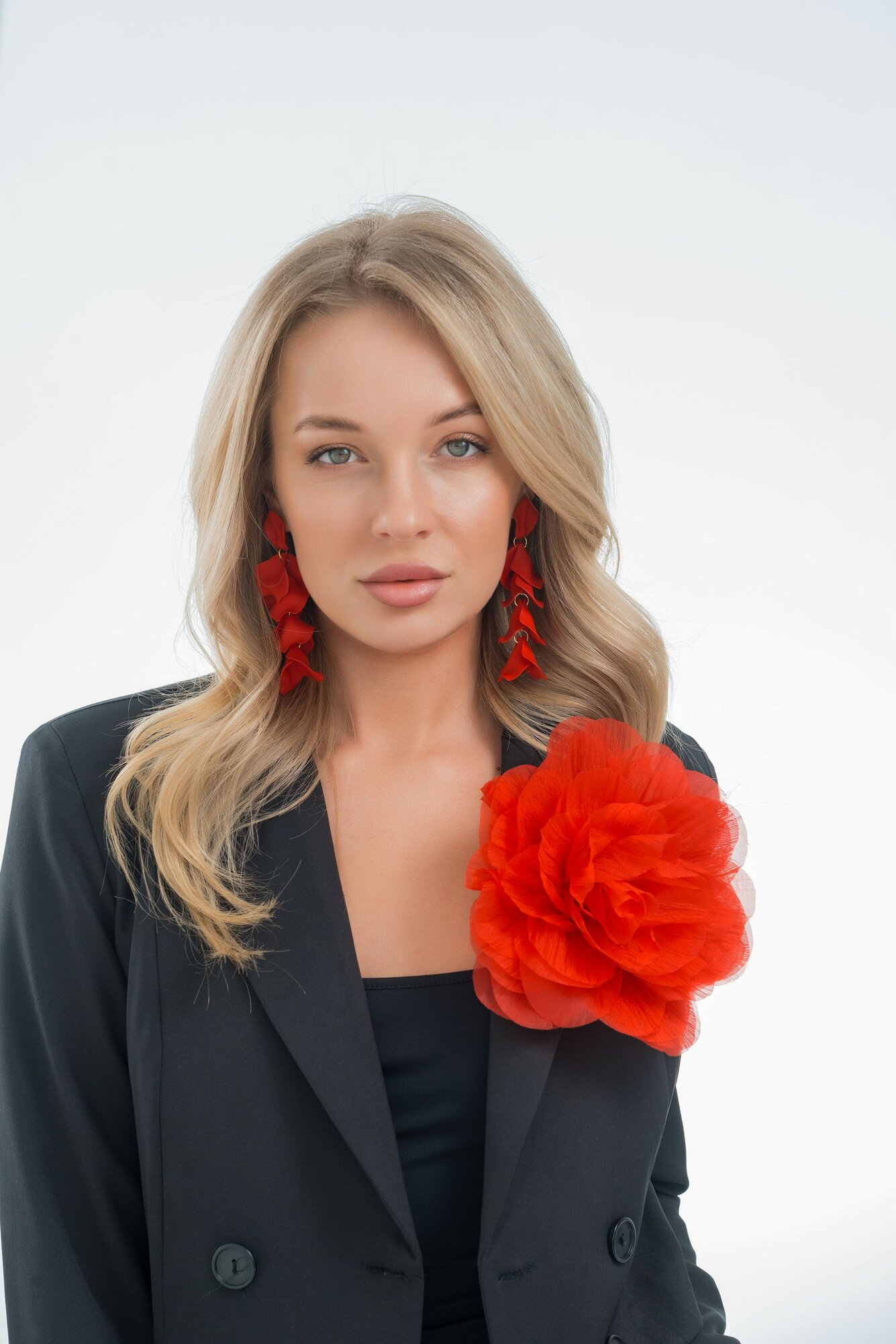 Серьги длинные висячие вечерние женские стильные алые матовые сережки тренд 2024