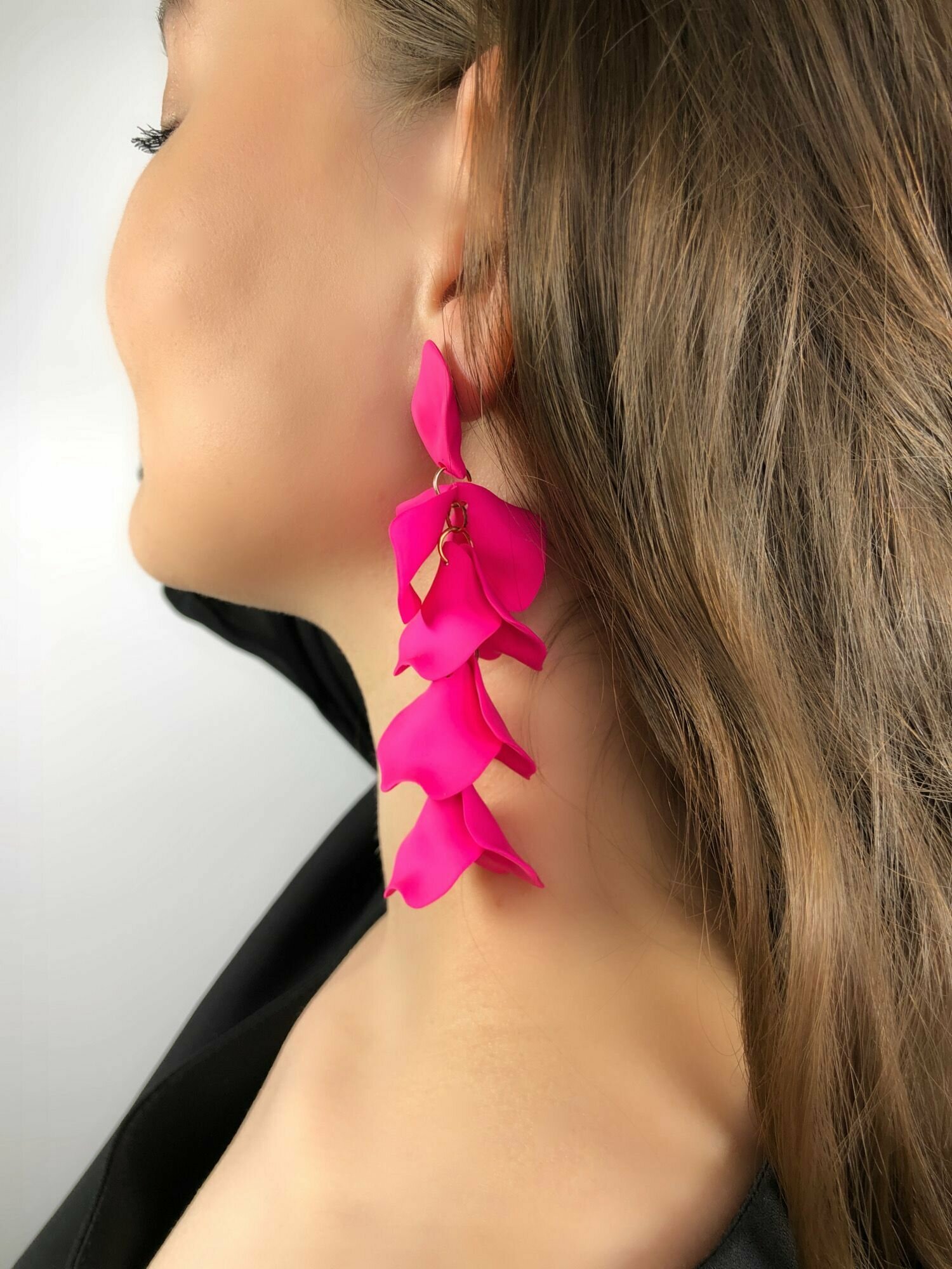 Серьги длинные висячие вечерние женские стильные яркие фуксия сережки тренд 2024