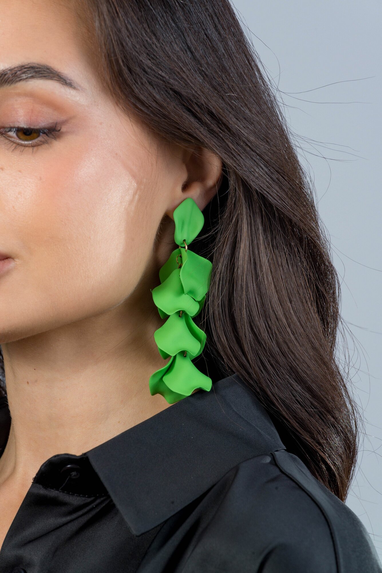 Серьги длинные висячие вечерние женские стильные зеленые сережки тренд 2024