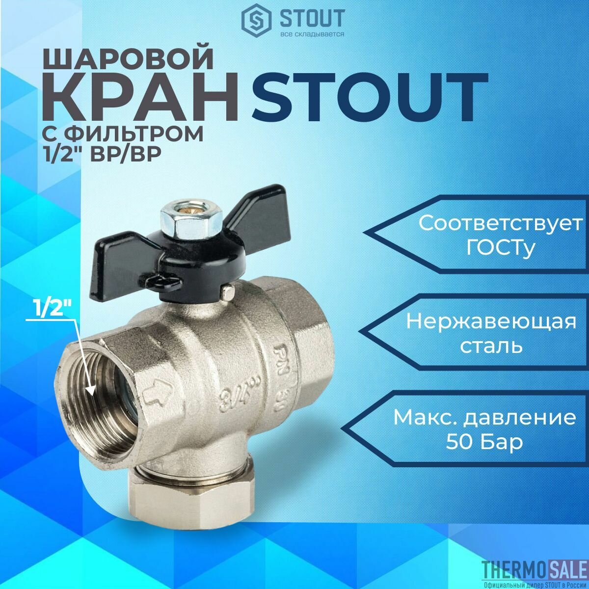 Купить Stout Кран шаровой с фильтром 1/2 (ручка-бабочка)