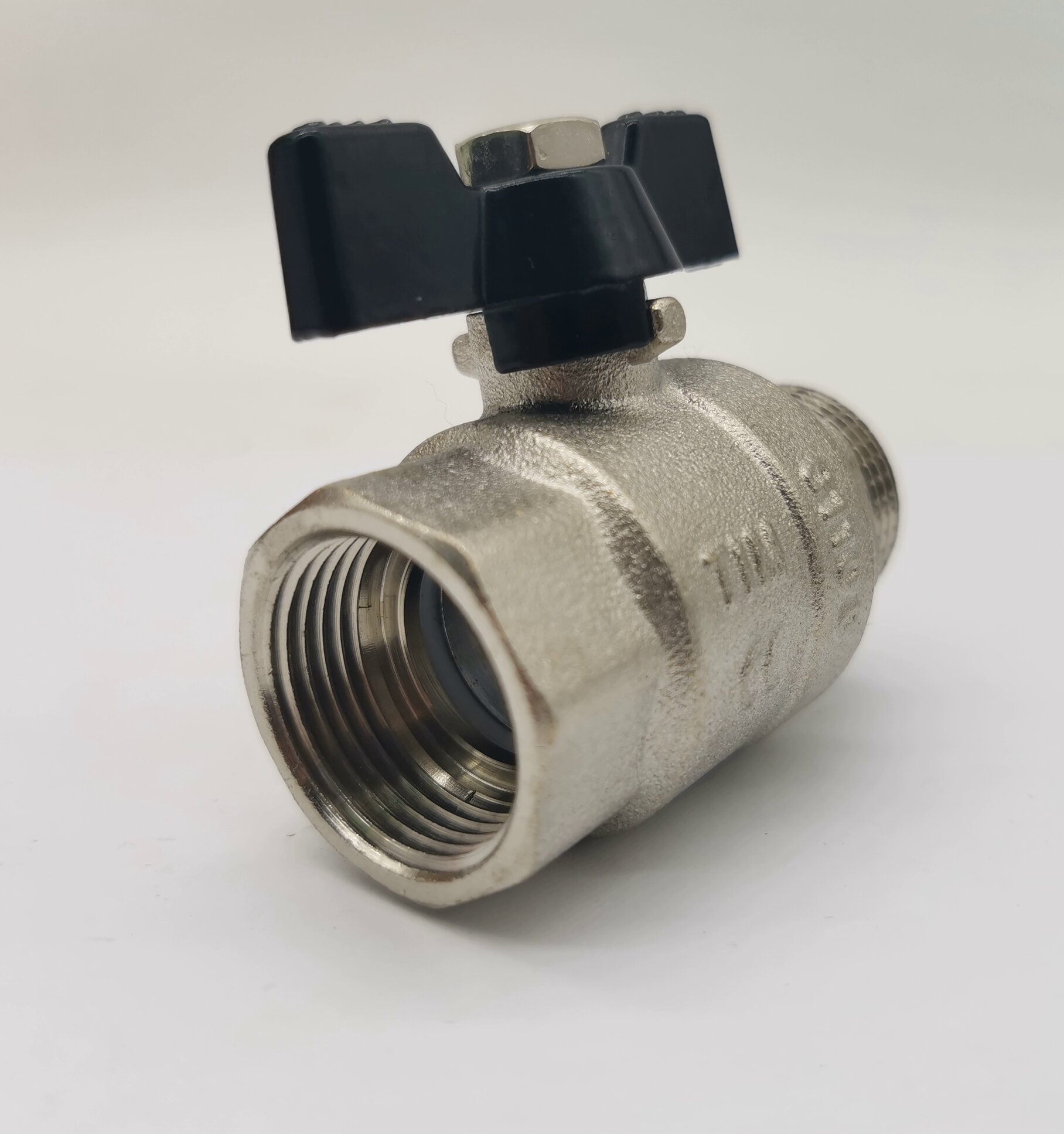 TIM Кран шаровой усиленный (бабочка) никель 3/4"г/ш