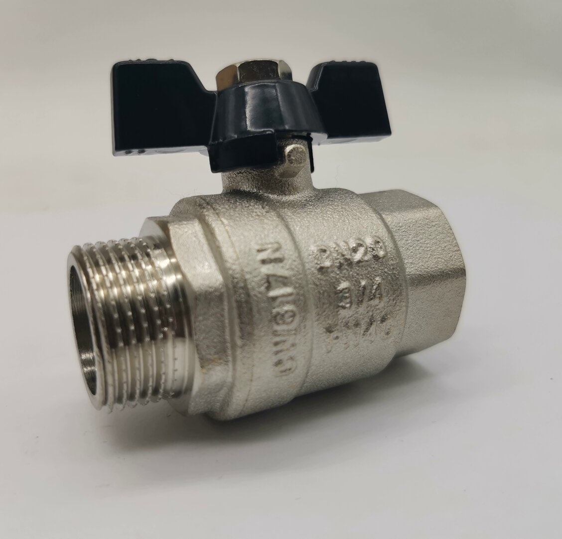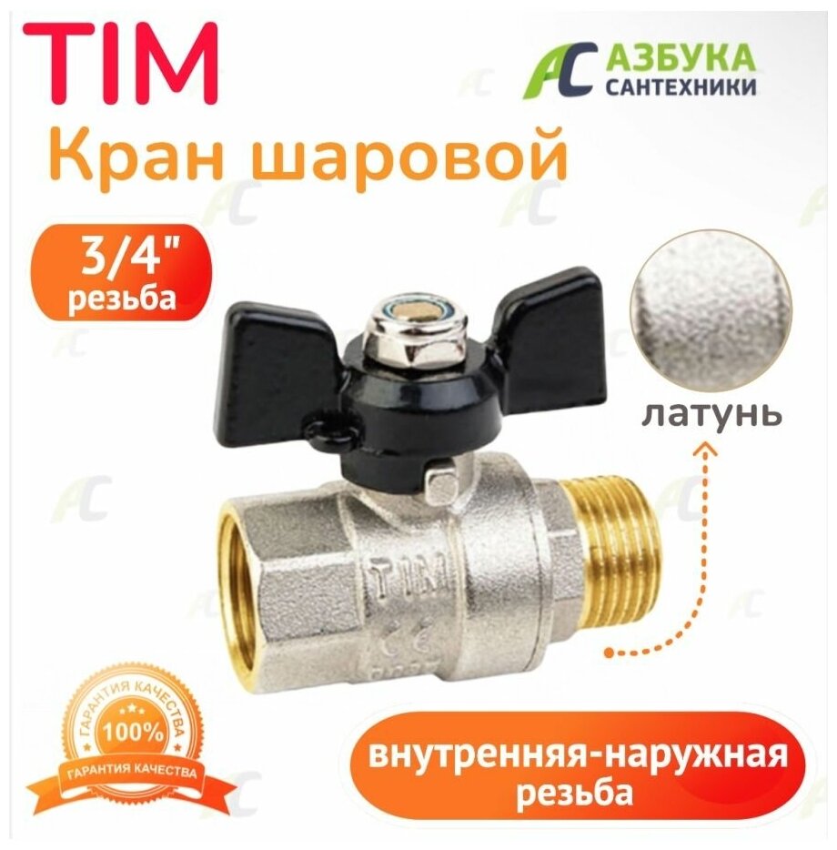 Кран шаровый 3/4" Н/В (ручка-бабочка) латунный никелированный TIM