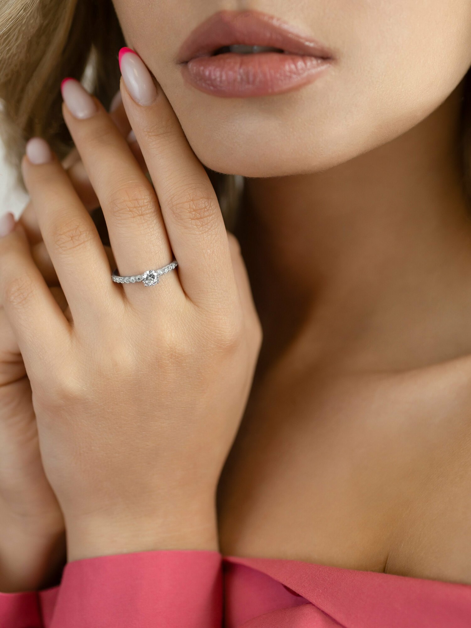 Кольцо помолвочное POKROVSKY, серебро, 925 проба, родирование, фианит, размер 17.5, серебристый