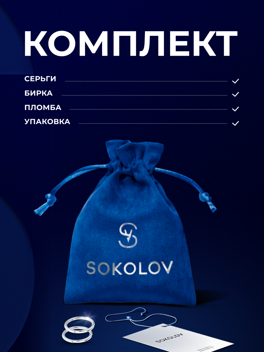 Серьги конго SOKOLOV, серебро, 925 проба, родирование, размер 10 мм, , серебристый интересное: