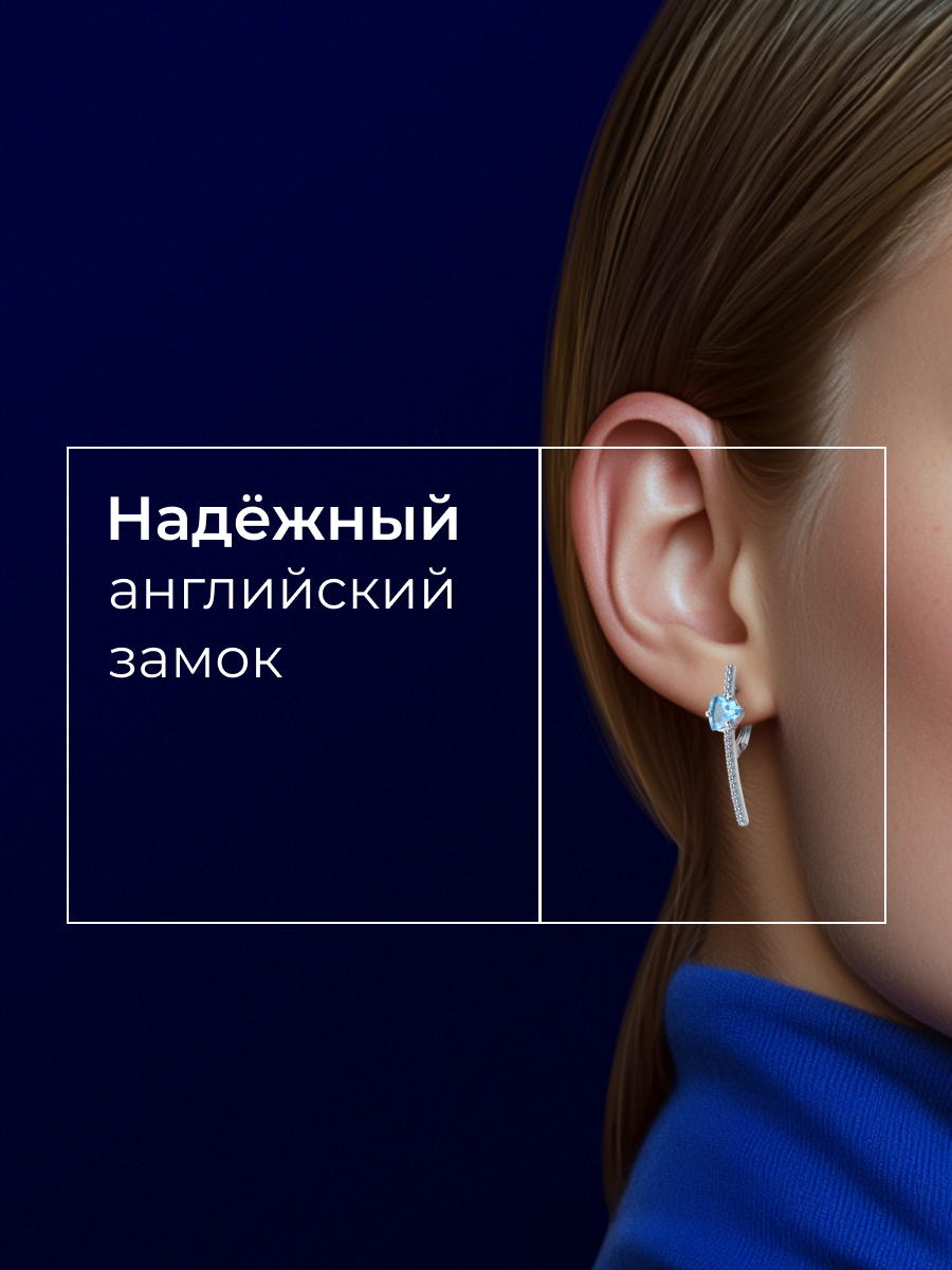 Серьги SOKOLOV, серебро, 925 проба, родирование, фианит, топаз, размер 32 мм интересное:
