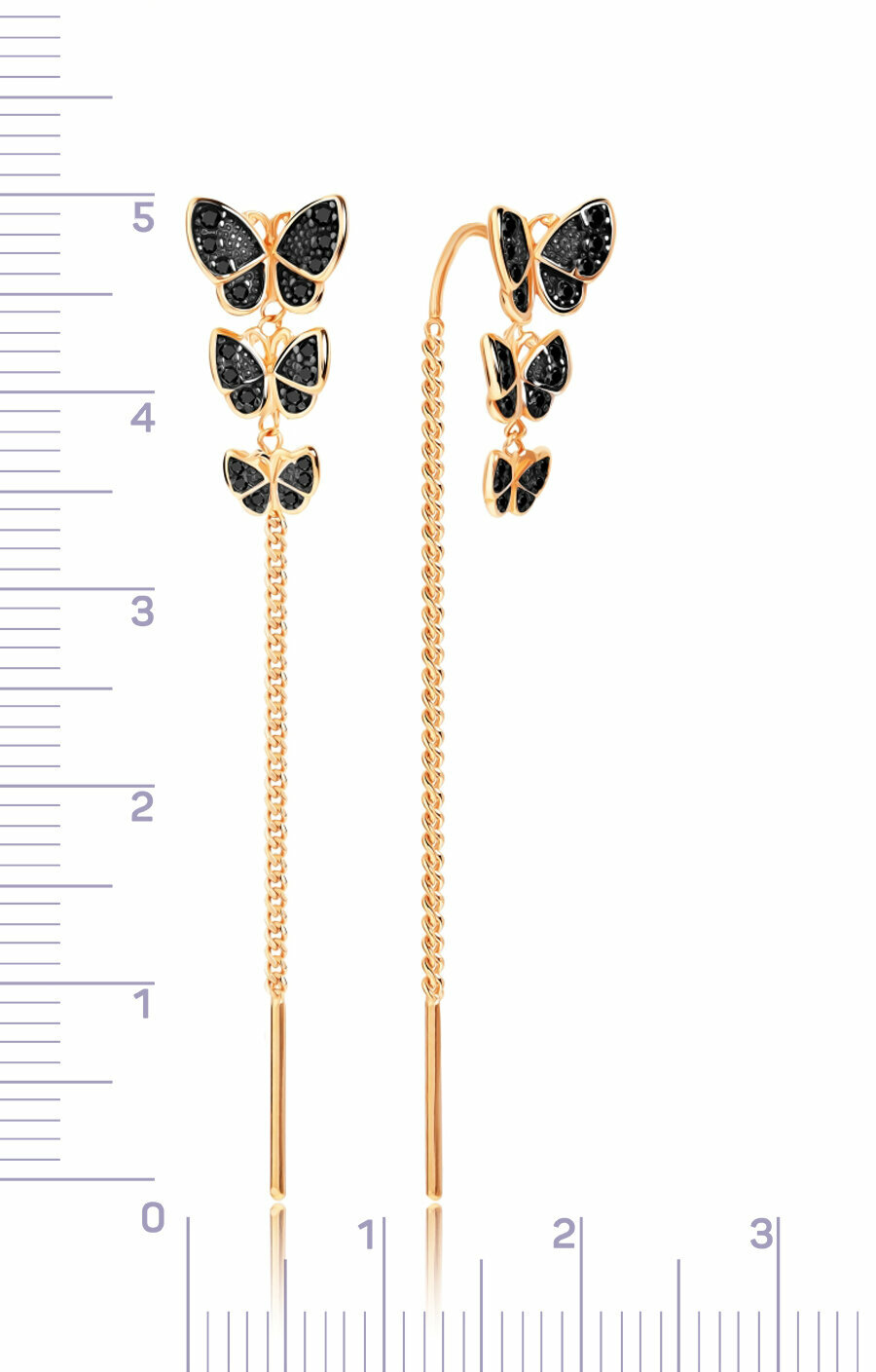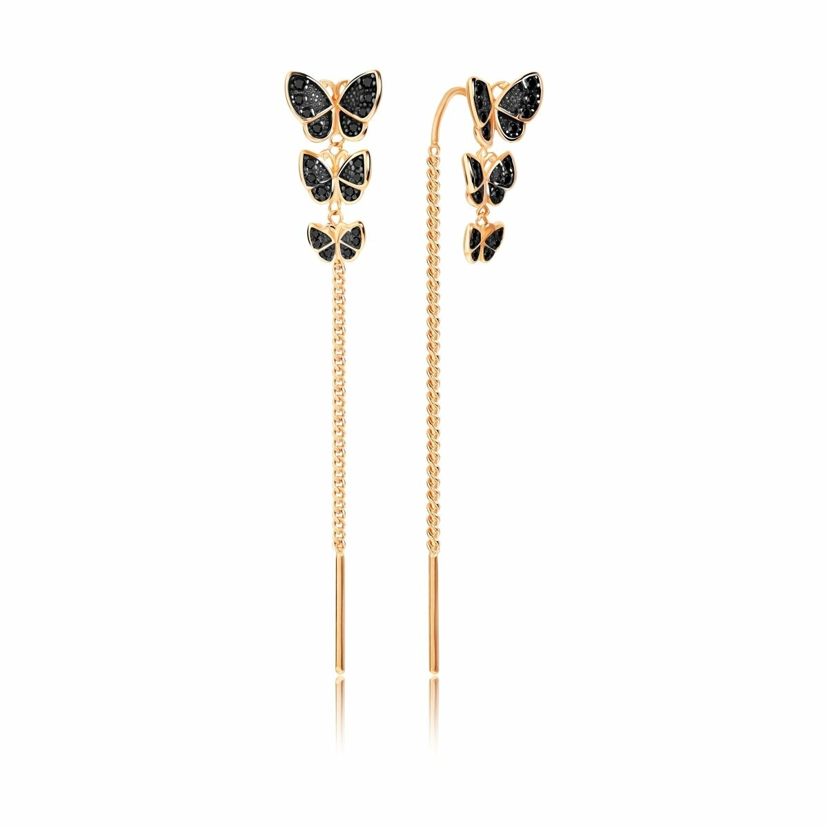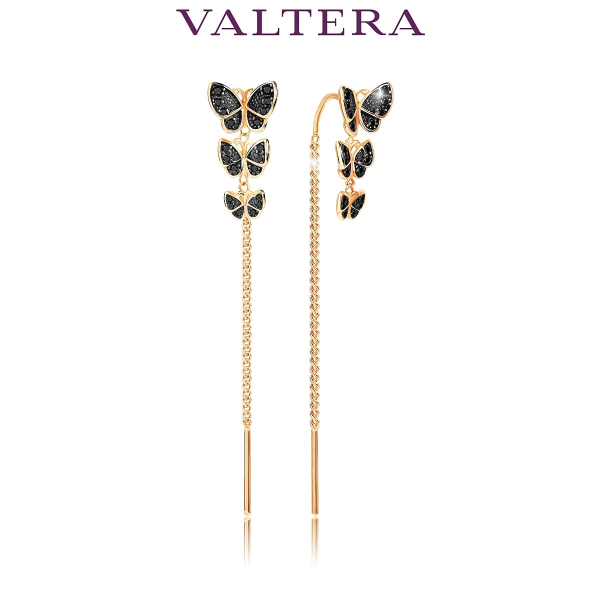 Серьги VALTERA протяжки / бабочки / серебро 925 пробы / покрытие - красное золото 585 пробы / с фианитами 119015