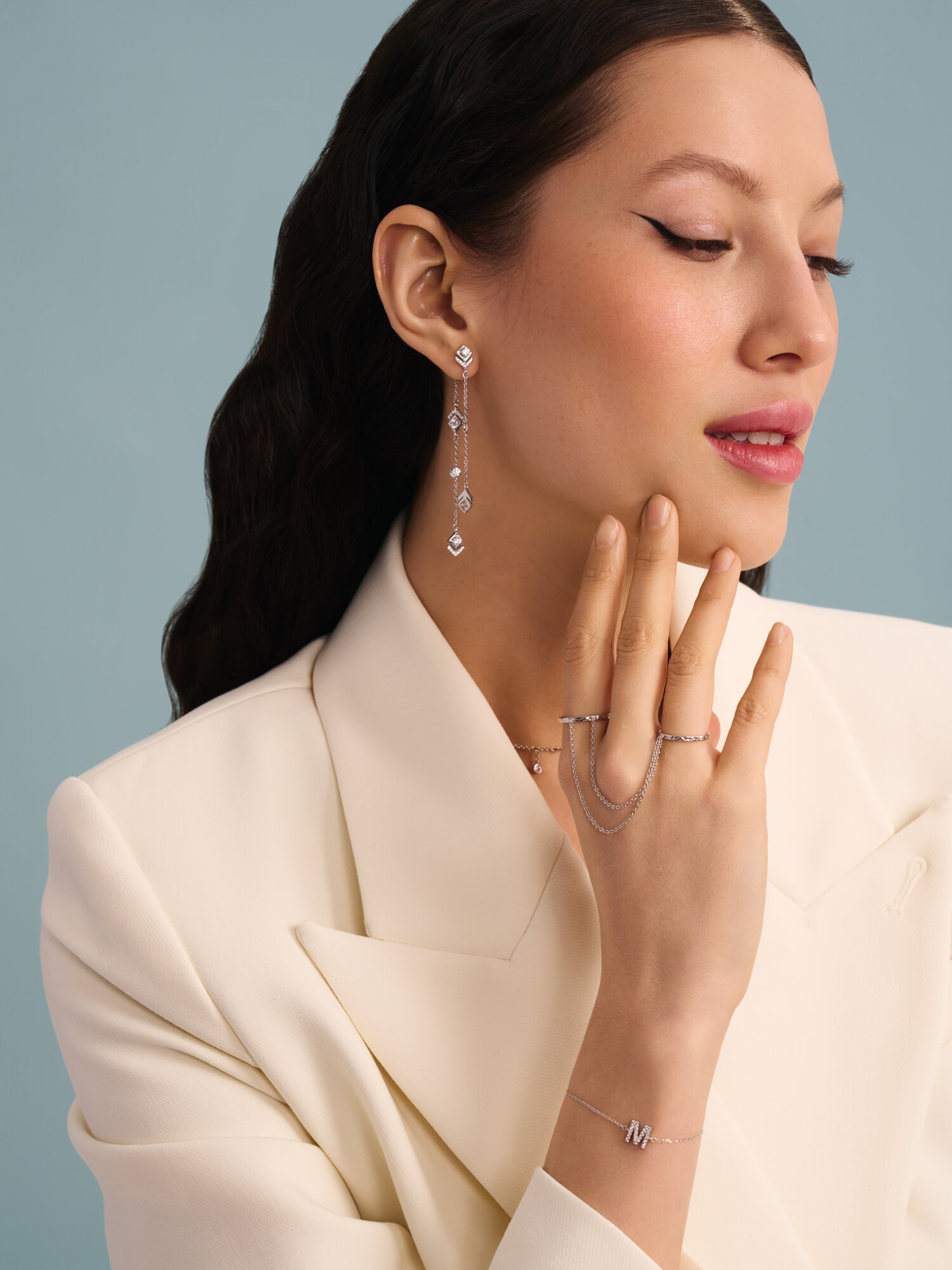 Серьги пусеты MIESTILO, серебро, 925 проба, родирование, фианит, , серебристый интересное: