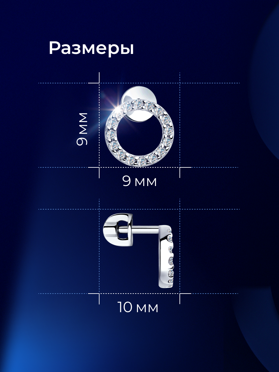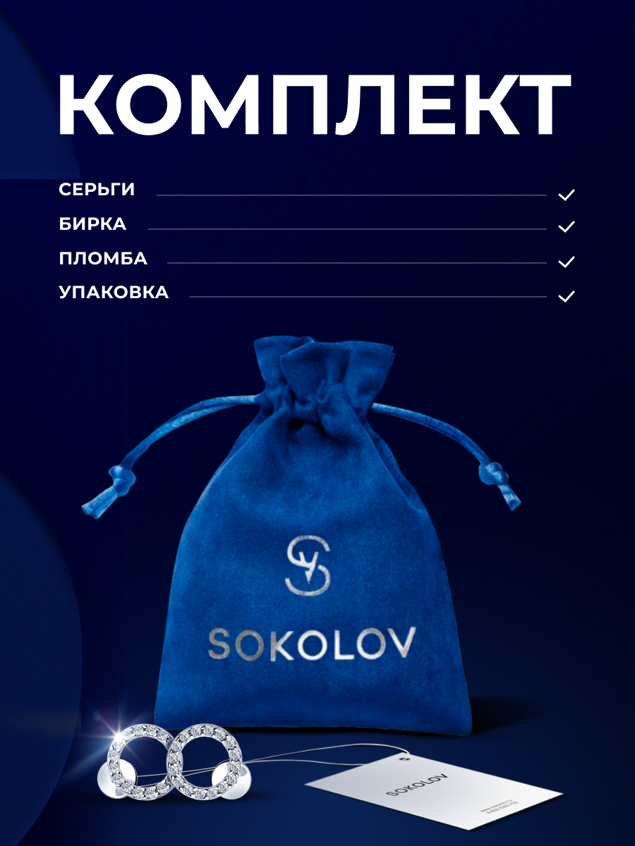 Серьги пусеты SOKOLOV, серебро, 925 проба, фианит, размер 9 мм, , бесцветный интересное:
