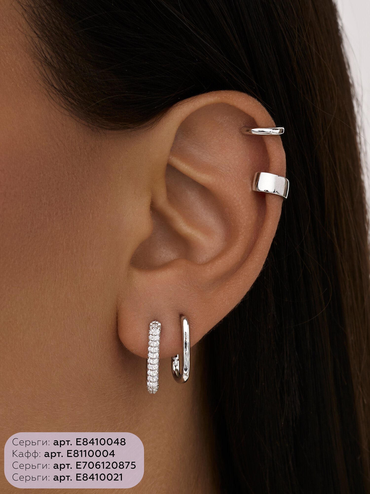 Серьги MIESTILO кафф моносерьга серебро