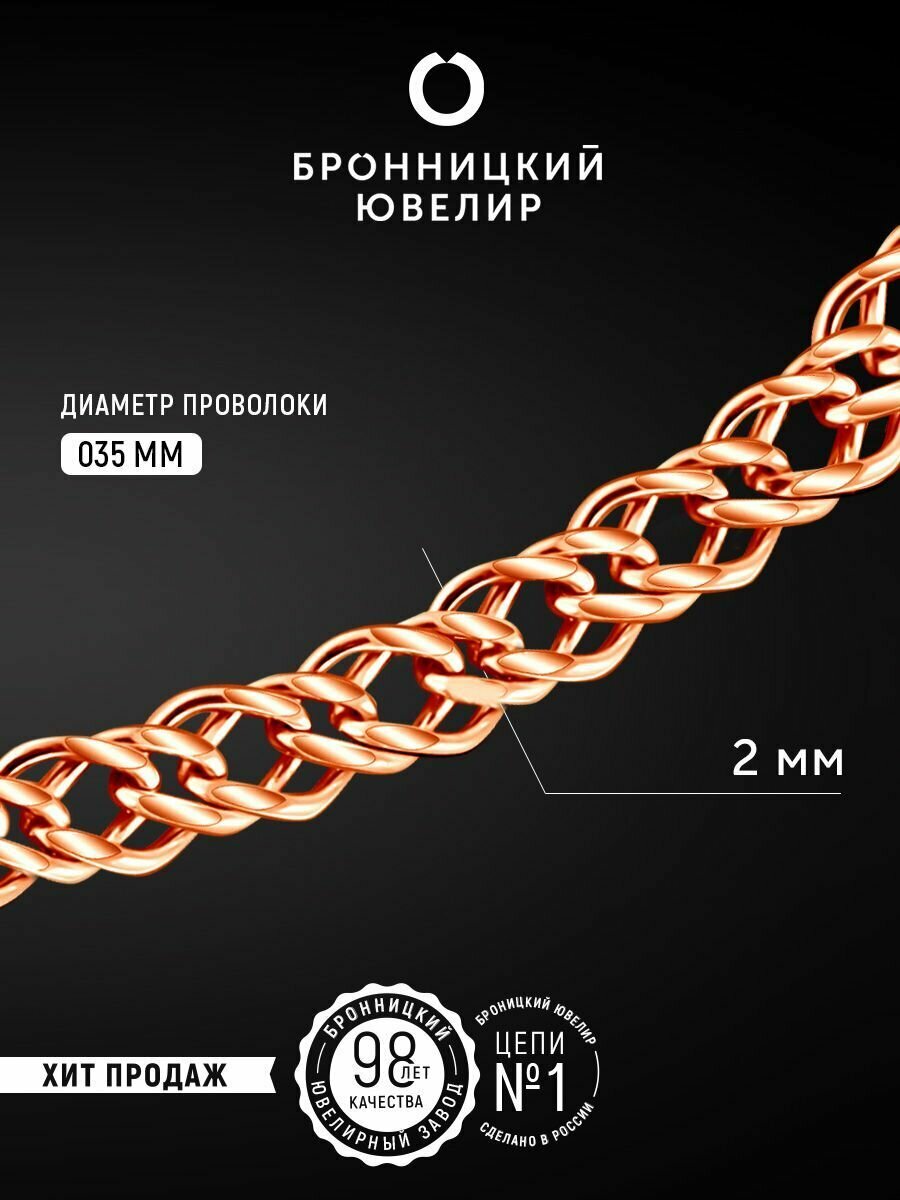 Цепь Бронницкий Ювелир, серебро, 925 проба, золочение, длина 40 см, средний вес 2.31 г, , красный, золотистый