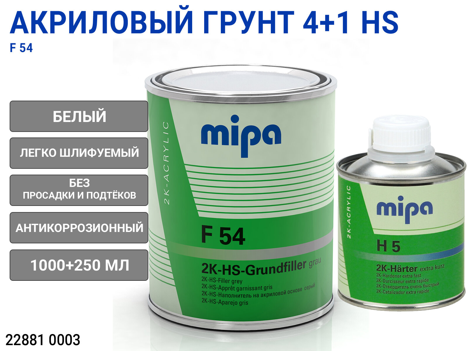 Купить Грунт 4+1 белый F54 HS акриловый с отвердителем MIPA (1л+0,25л)
