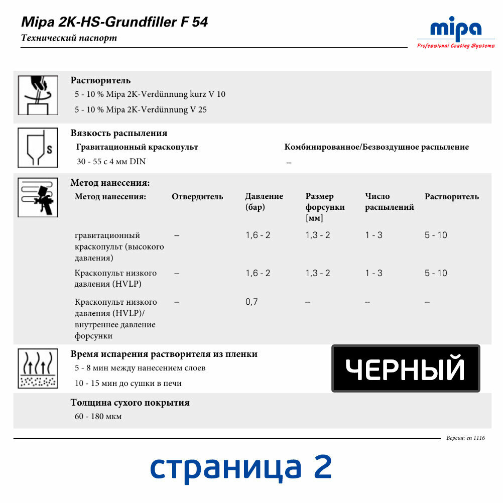 MIPA Grundfiller HS 2K F54 грунт-выравниватель 4:1, 1,25л (комплект 1л + 0,25л отв.), черный