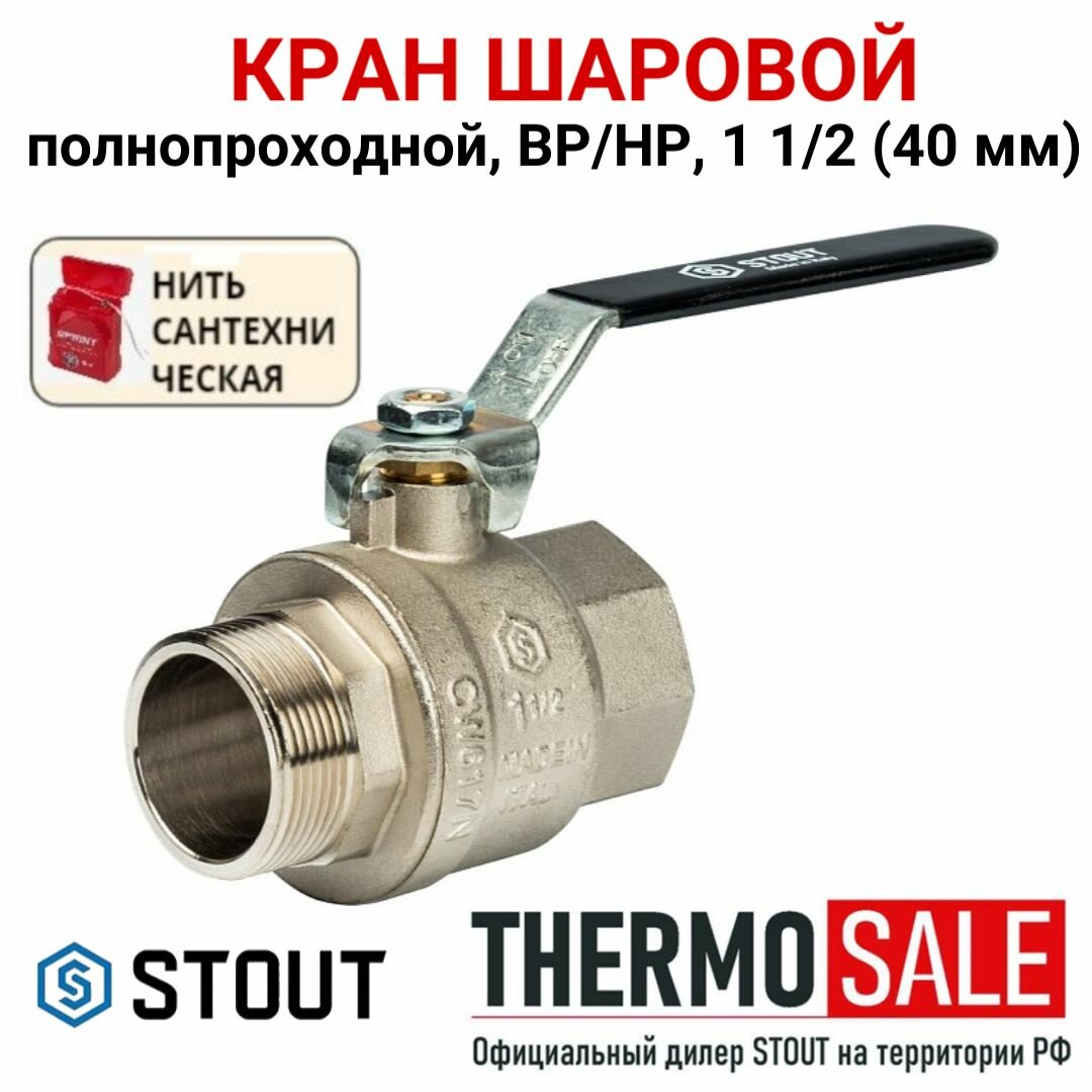 STOUT Кран шаровой полнопроходной, ВР/НР, ручка рычаг 1 1/2" SVB-0003-000040 STOUT