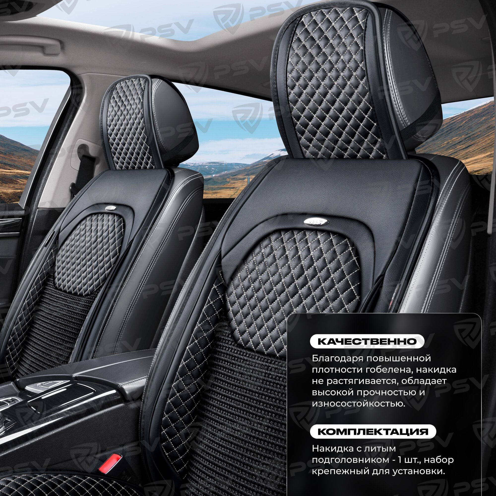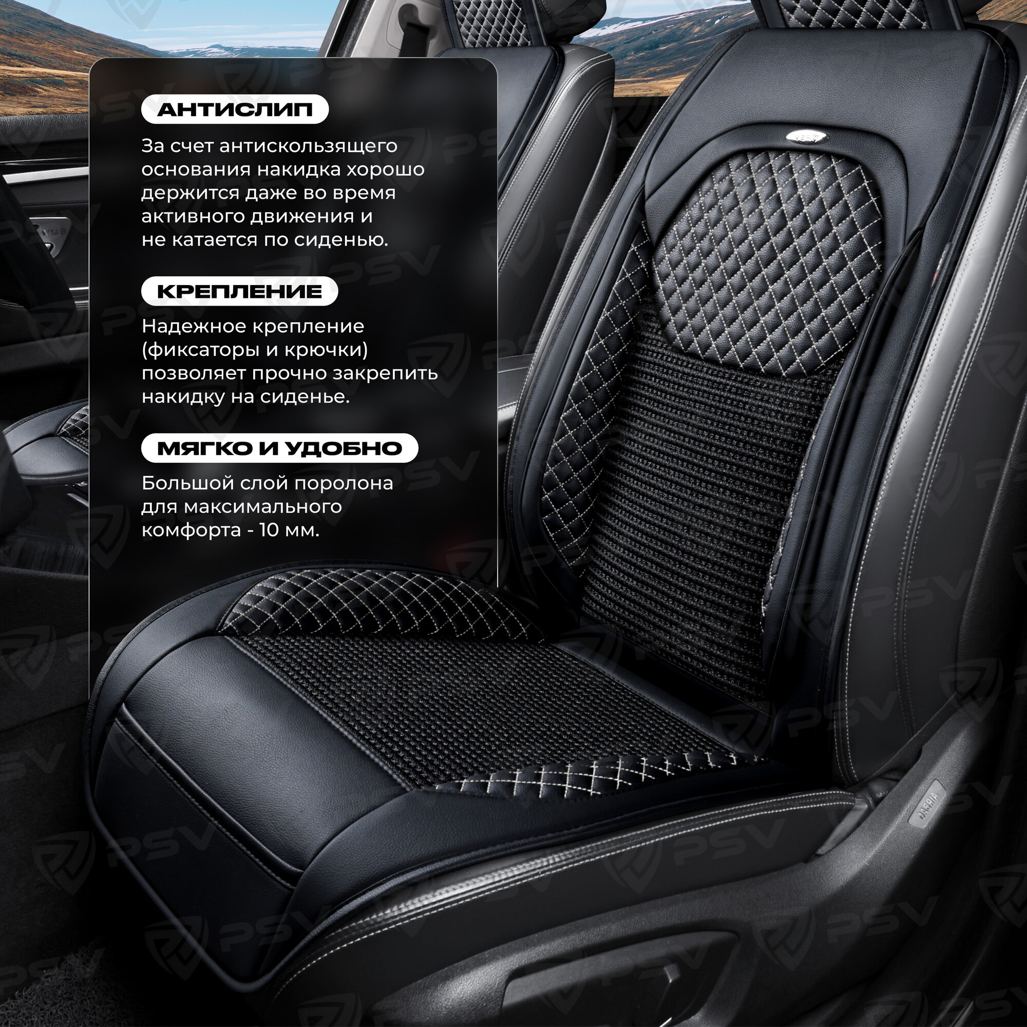 СохранитьНакидка на сиденье универсальная PSV Vostok FRONT (Черный/Отстрочка белая), на переднее сиденье, 1 штука интересное: