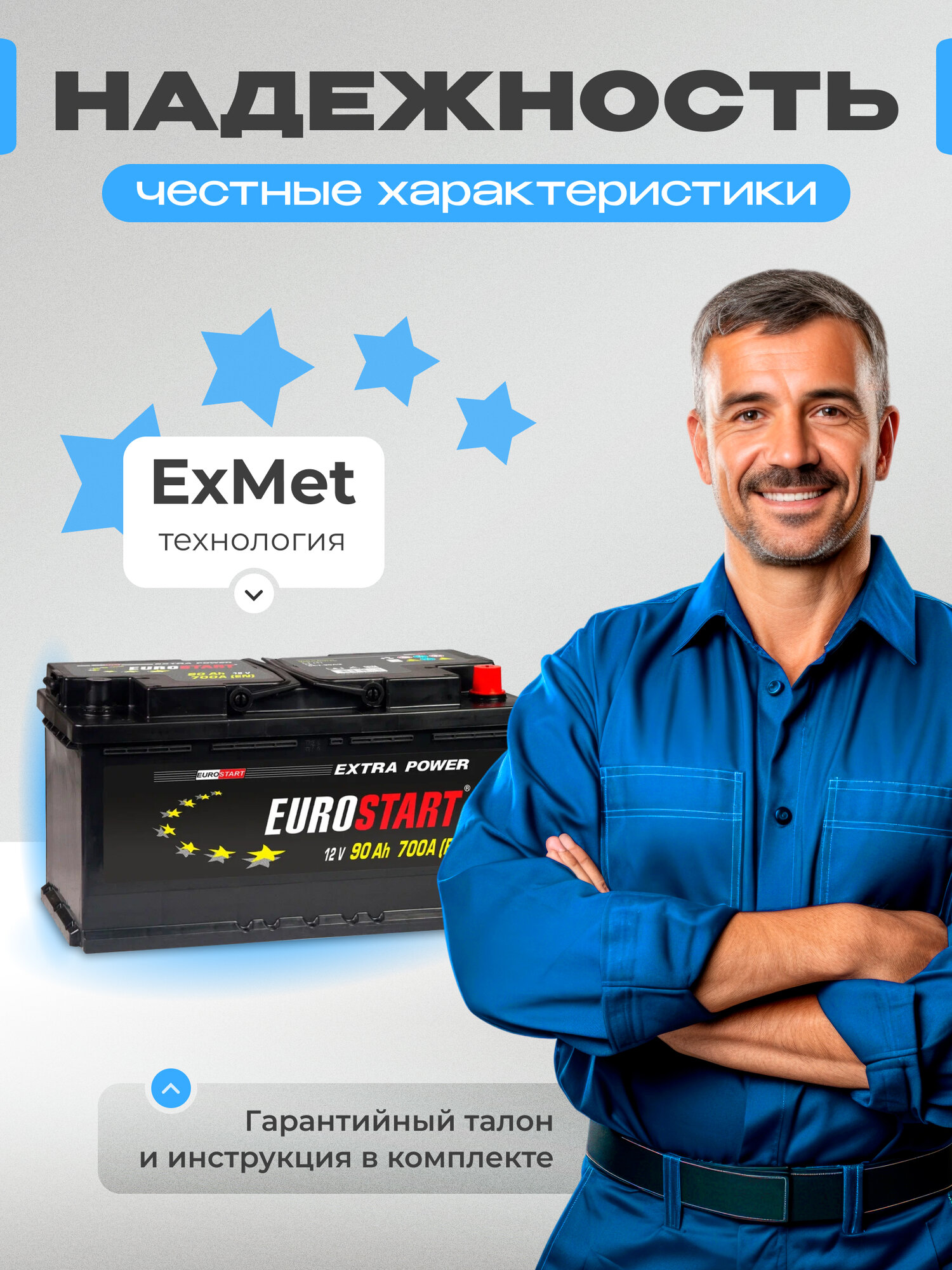 Ниже Вы можете прочитать отзывы на Аккумулятор автомобильный EUROSTART Extra Power 90 Ah 700 A обратная полярность 353x175x190, ознакомится с подробными характеристиками, посмотреть интересные обзоры и фотографии на Аккумулятор автомобильный EUROSTART Extra Power 90 Ah 700 A обратная полярность 353x175x190.